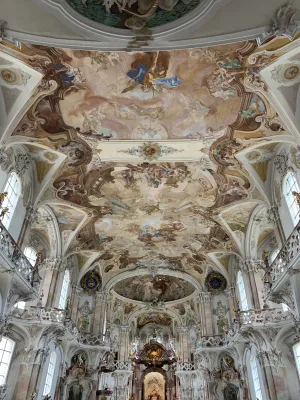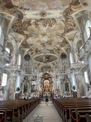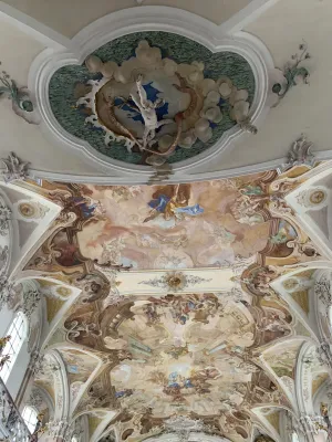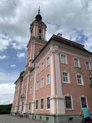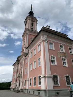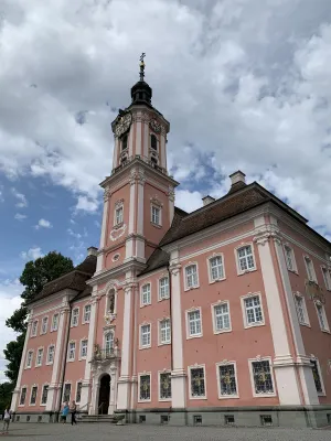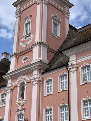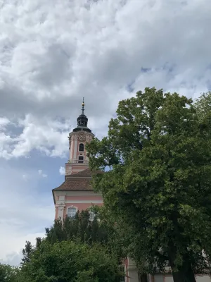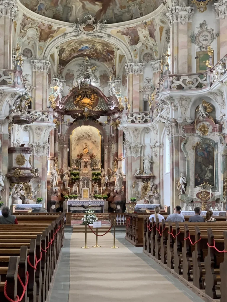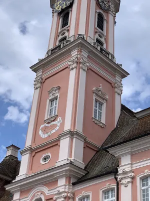 Surrounded by orchards and vineyards, not far from the shores of Lake Constance, stands the Basilica of St. Mary in Birnau. This Baroque jewel was commissioned by Salem Abbey under Abbot Anselm II Schwab and built according to the plans of architect Peter Thumb on the site of a pilgrimage church that had stood there since the early Middle Ages. Thanks to the 80-centimeter-tall statue of the Virgin Mary, which was erected in 1420 and was said to perform miracles, it became a popular place of pilgrimage. From 1384 until the pilgrimage church was closed in 1808 in the course of secularization, it was looked after by the Cistercian monks of Salem Abbey. The church was reopened in 1919 by the Bregenz Territorial Abbey of Wettingen-Mehrerau. During World War II, the pilgrimage church and monastery were closed by the National Socialists from 1941 to 1945. This is commemorated by the small cemetery not far from the pilgrimage church with its hundred graves of prisoners killed at the Überlingen-Aufkirch concentration camp. In 1971, Pope Paul VI elevated the church to the rank of basilica, which is now one of the most visited sights on Lake Constance. This is not only due to its fantastic location high above the vineyards and its imposing appearance with its 51-meter bell tower, but also to its magnificent Baroque interior. In addition to seven altars, three ceiling frescoes, the enormous organ, and ten clocks, including three sundials on the rectory, four tower clocks, and three clocks in the church, one of which is a moon clock, all lines of the sacred building and the picturesque and sculptural imagery are directed toward the high altar, above which the legendary late Gothic image of grace is enthroned. The Birnau Basilica offered me a magnificent view of Lake Constance in a dreamlike setting of vineyards and meadows and inspired me with its beautiful architecture and magnificent interior, which is decorated in the ornamental Rococo style.