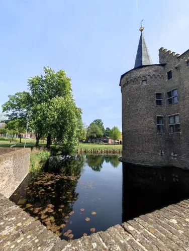 In the heart of the city of Helmond in the Dutch province of North Brabant lies Helmond Castle, the largest moated castle in the Netherlands, surrounded by a huge moat and picturesque castle gardens with fascinating sculptures by various artists. This castle, which is over 700 years old, with its square layout and characteristic round towers at each corner and large moat, was probably commissioned by Lodewijk Berthout van Berlaer, Lord of Helmond. Construction of the new castle began in 1325 and lasted until 1350. The new castle not only served as a bulwark to secure and defend the northeastern border of the Duchy of Brabant, but was also a symbol of the power of the Berlaer family. Until the new castle was completed, the family lived in the “Old House,” a wooden castle with a residential tower, located only 100 meters away from the castle in a peat bog in the Aa valley. This wooden castle complex was the first castle in Helmond, built between 1170 and 1175. Maria of Brabant, daughter of Henry I of Brabant, also lived there. She married Emperor Otto V, becoming Empress of the Holy Roman Empire. After the death of her husband, she remarried in 1218 to Count William I of Holland. Maria, who was extremely religious, enjoyed hunting. According to legend, one day she got stuck in the moor while out hunting on her horse. In her desperation, she promised to build an abbey on that very spot if she were rescued. Maria was indeed freed from her predicament, kept her word, and founded the Binderen monastery. The name is derived from Maria’s cry for help: “Ik binder in,” which means “I’m stuck” in English. Helmond Castle, which only acquired its present appearance in the late 17th century, had to withstand not only the siege by Prince Maurice of Orange during the Eighty Years’ War, but also a major fire in 1549, which caused extensive damage. Over the centuries, the castle was the residence of four noble families. These were the van Berlaer family, the van Cortenbach family, the van Arlberg family, and the Wesselman van Helmond family. The latter was also responsible for the construction of the Zuid-Willemsvaart Canal. However, in 1923, the last descendant of the Wesselman van Helmond family bequeathed the castle to the city. Large parts of the castle gardens were sold to the Vlisco company, which built its huge factory buildings there. The city had the castle converted into a town hall based on a design by J. W. Hanrath. In addition to the registry office, where couples can tie the knot, it has also housed the Helmond Museum since 1982, which provides insights into the history of Helmond and its castle.