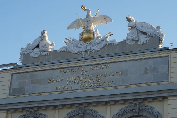 I am still enchanted by my visit to the Gloriette and its dreamlike view of Vienna and Schönbrunn Palace. A gloriette is a building in a garden complex that is located on an elevated site overlooking the surrounding area. The largest gloriette is located in the palace gardens of Schönbrunn Palace in Vienna. The Gloriette is a magnificent building that was constructed in 1775 during the reign of Emperor Joseph and Empress Maria Theresa in the gardens of Schönbrunn Palace. It is one of the early classicist buildings and its central section was elaborately glazed. In 1945, the east wing was destroyed by bombs. Reconstruction took place between 1947 and 1950. In 1995, it was restored again, during which the glazing was installed according to the historical plans. Since 1996, the interior of the Gloriette has been a coffee house, restaurant, and viewing platform. I am truly overwhelmed by this “temple of fame” with its 20-meter-high viewing terrace. The imperial ambience with its fantastic view of Vienna and Schönbrunn Palace is unique. I get goose bumps and the weather is at its best with bright sunshine. In the middle of the building, a mighty imperial eagle sits enthroned on the globe, surrounded by weapons trophies. The sun makes the white facades appear even whiter. I feel like I’m in a dream. My gaze wanders to the side staircases, which are lined with mighty trophies.