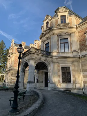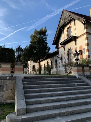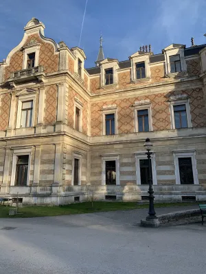 The Hermes Villa in the former imperial hunting grounds of Lainzer Tiergarten in Vienna is known as the castle of dreams. I really wanted to visit this castle, which Emperor Franz Joseph I gave to his empress Elisabeth, popularly known as Sisi. The castle, surrounded by nature, was intended to encourage the travel-loving empress to stay in Vienna more often. The romantic villa, which was built in just five years between 1882 and 1886 according to the plans of the famous Viennese Ringstrasse architect Carl von Hasenauer, was originally called “Villa Waldruh.” However, the empress commissioned Berlin sculptor Ernst Herter to design the sculpture “Hermes the Guardian,” which still stands in the center of the park today. This is how the villa got its name, Hermes Villa. Between 1887 and 1889, the imperial couple regularly used this magnificent villa in late spring. After 1911, the villa had several owners and was even used as a film set in the 1960s for Walt Disney’s film “The Flight of the White Stallions.” On November 4, 1969, the villa was leased to the “Friends of Hermes Villa Association” and, after extensive renovation, was gradually opened to the public from October 9, 1971. Today, the first floor houses an impressive exhibition on the history of the villa and a branch of the Historical Museum, where special exhibitions are regularly held. In addition to magnificent paintings from the historicist period by Hugo Charlemont and Gustav Klimt, the empress’s bedroom with its gigantic state bed from the time of Maria Theresa and the magnificent murals inspired by Shakespeare’s “A Midsummer Night’s Dream” and designed by Hans Makart are absolutely fascinating. From the Lainzer Tor, I walked over a kilometer through the Vienna Woods to the Hermesvilla. Sisi’s castle of dreams enchanted me from the very first moment with its mixture of Renaissance and Baroque elements. The two-story building with its facade cladding of house stones and band-like red and glazed bricks is simply beautiful. I strolled through the courtyard with its large stables and farm buildings as well as the servants’ quarters and saw the fantastic fountain by Viktor Tilgner in the center of the courtyard. This fountain depicts Genoveva with the doe. Legend has it that Genoveva of Brabant, who lived in the 8th century, was mistakenly accused of adultery and sentenced to death. However, the executioner took pity on the pregnant woman and set her free. Genoveva then lived for years with her newborn son in a cave and was cared for by the Virgin Mary in the form of a doe. After six years, she was found by her husband Siegfried, who had always believed in her innocence. In gratitude for Genoveva’s salvation, he built a pilgrimage church in Fraukirch in the German state of Rhineland-Palatinate. The beautiful villa has a staircase with impressive oak paneling and a coffered ceiling in the German Renaissance style. The octagonal reception hall dates back to the 17th century. In addition to valuable paintings, the villa also houses many sculptures from Greek mythology. Today, the large hall is home to a café-restaurant with a magnificent terrace overlooking the park. The villa also houses the Tilgnersaal, the so-called church hall, with a magnificent ceiling and house altar in the background. I was really impressed by the castle and its 36-hectare park, which blends seamlessly into the 2,400-hectare Lainzer Tiergarten forest. The Hermesvilla is a beautiful castle in an idyllic spot. Very close to the villa is the famous sculpture by artist Ulrike Truger, made of Carrara marble and entitled: “Elisabeth: Compulsion – Escape – Freedom.” Fans, cloaks, and wings serve as symbols. The castle of dreams wonderfully combines nature, art, and culture and has become a true pilgrimage site for Sisi fans.