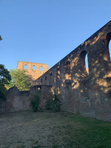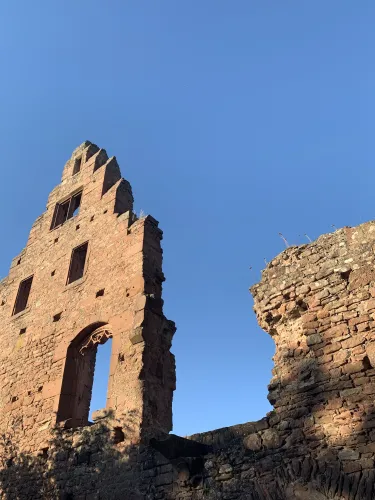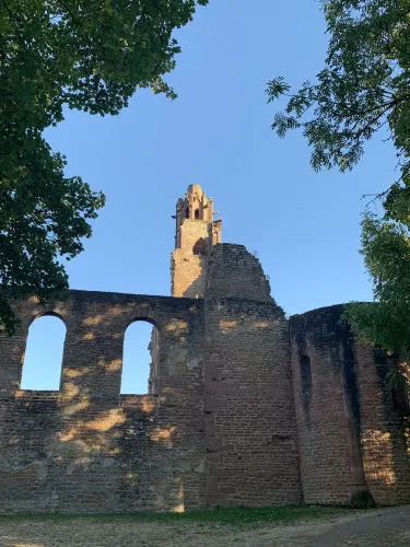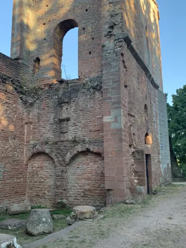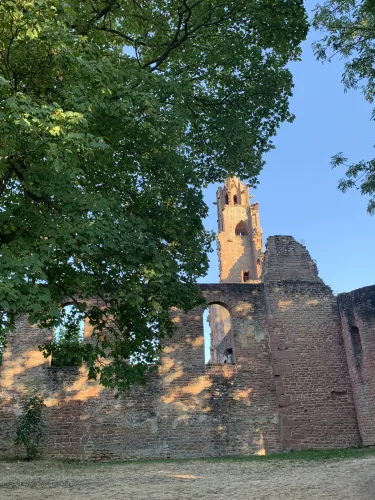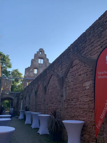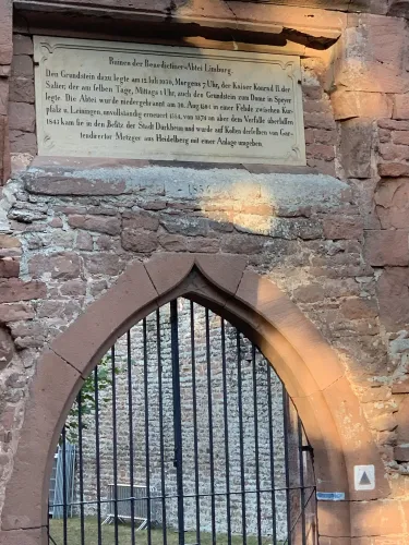 The Limburg monastery ruins on the edge of the Palatinate Forest in Bad Dürkheim an der Weinstraße are a truly mystical monument and one of the most significant and largest monuments of the early Salian period. According to legend, they were built by the devil. The master builder of Limburg had asked the devil to help him with the construction. The devil thought he was building a tavern and not a monastery. When the deception was discovered, he wanted to smash the monastery with a rock. But the monks asked the Mother of God for help, and she melted the stone like butter. Even today, there are supposedly imprints of the devil on the Devil’s Stone, which is located in the Palatinate Forest near Bad Dürkheim. So much for the founding myth. What is certain is that a Celtic mountain fortress already existed there around 500 BC, which the Salian dukes of Worms converted into a castle after the Migration Period. On July 22, 1025, his birthday, Conrad II, later emperor from the influential Salian dynasty, laid the foundation stone for the imposing Limburg Monastery, an abbey of the Benedictine order, built of red sandstone in the Romanesque style. From 1034 to 1063, the imperial regalia, the symbols of imperial power and dignity and the greatest treasure of the Holy Roman Empire, were kept there. In 1038, a synod was held there that determined the beginning of Advent for all of Western Christianity. It was decided that the first Sunday of Advent would always be celebrated between November 27 and December 3. The columned basilica was completed in 1042. It was consecrated in honor of the Holy Cross. Its name, “Stift zum heiligen Kreuz” (Abbey of the Holy Cross), can be traced back to the fact that the son of Emperor Conrad II, who died in 1039, Emperor Henry III, brought a piece of the Holy Cross here in 1046. To this day, the remains of Queen Gunhild of Denmark, the wife of Emperor Henry III, rest in the nave. From 1206 onwards, the Counts of Leiningen were appointed as protectors of the monastery. Between 1205 and 1214, they built the fascinating Hardenburg Castle on land belonging to the monastery. This led to a legal dispute that was only settled in 1249 by a treaty. In 1376, there were renewed conflicts between the Counts of Leiningen and the prince-bishoprics of Worms, Speyer, and Mainz, during which the monastery was severely damaged. Finally, in 1504, Count Emich IX of Leiningen-Hardenburg had the monastery burned down and robbed. When it was rebuilt, only the choir of the abbey was constructed. When Frederick III of the Palatinate introduced the Reformation in 1546, he prohibited the admission of novices because the monks did not want to accept the doctrine. During the Napoleonic era, the monastery was used as a quarry until it was acquired by the town of Bad Dürkheim in 1843. Today, the Limburg monastery ruins are among the most remarkable in the Palatinate and have been listed as a cultural object worthy of protection at European level since 1973. The Limburg monastery ruins are also home to the Konrad 2 restaurant and event location. The Limburg monastery ruins are a valuable cultural asset that is not only steeped in history but also offers a breathtaking panorama of Bad Dürkheim.