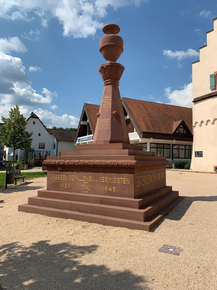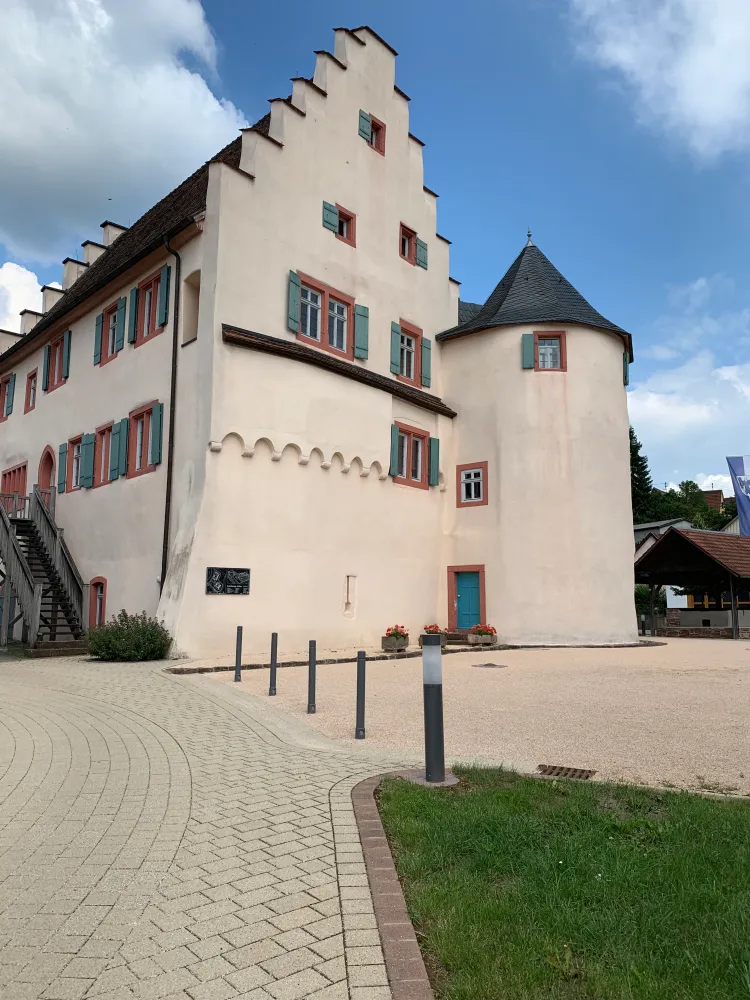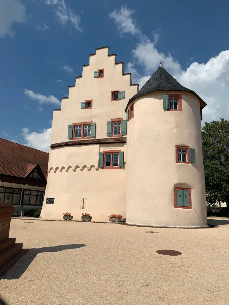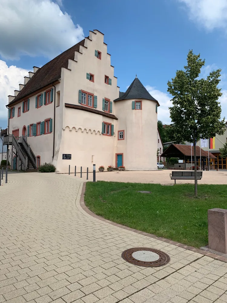 During my tour, I discovered the former moated castle in Dallau, a district of the municipality of Elztal in the Neckar-Odenwald district. The castle was built around 1300 as a deep castle and was the seat of the then lords of Dallau, the Lords of Heinriet. The castle consisted only of a residential tower surrounded by a ring wall. In 1356, the castle was destroyed by the Archbishop of Mainz. It was not until 1371 that a rectangular building was erected on parts of the demolished tower castle and incorporated into the remaining ring wall. In 1416, the Teutonic Order bought half of the village and the entire castle. The Teutonic Order had the castle fundamentally expanded between 1438 and 1451. The old residential tower was replaced by the current palace with a stepped gable, which was built on the old ring wall to the south and west. The new main building, surrounded by a 20-meter-wide moat, partially double-walled and equipped with four corner towers and a gatehouse, formed the great hall. Beyond the moat to the west, the castle complex was adjoined by an outer bailey, also walled and accessible from the village only through a gate tower, with various farm buildings. Although the castle was captured by rebels during the Peasants’ War in 1525, it suffered only minor damage. In 1529 and 1530, the castle was expanded again, resulting in a multi-story kitchen extension on the north gable of the great hall. The entire complex was surrounded by a moat filled with water, transforming the castle into a small moated castle. In 1668, the complex came into the possession of the Electoral Palatinate and was abandoned in the course of the 18th century. Many parts of the building were demolished. After the municipality of Elztal acquired the castle in 1974, it was included in the monument utilization program in 1986. With its financial resources, it became possible to renovate and preserve this impressive medieval castle. The renovation took over four years. In July 1995, the castle was inaugurated and put to cultural use. Today, the second floor houses a branch of the music school, and the first floor is used for events and civil weddings. Today, Dallau Castle serves primarily cultural purposes. I parked my car and walked around the idyllic castle. Next to a memorial in front of the castle for those who fell in World War II, I discovered a mysterious stone. At first, I didn’t know what significance the stone had for the people of that time. An information board next to the stone enlightened me. The Ruhestein is a witness to a bygone era: the time before industrialization. Dallau at that time was dominated by agriculture. With over 1,700 hectares of land, it was one of the largest villages in the area. The distances that people and animals had to travel to reach the fertile fields of the plateau were correspondingly long. Many kilometers on steep dirt roads with up to 150 meters of elevation gain on foot and by horse-drawn cart. The farming families therefore often stayed in the fields from early in the morning until late in the evening. The women laboriously balanced food and drink in large baskets as they made their way up the hill. They were supposed to be able to rest halfway up. That is why the then bailiff Andreas Silber erected this resting stone in 1816 near today’s quarry in the “Trieb” field. After motorization, the stone lost its significance. It fell into oblivion and weathered away. Gustav Reichert saved the resting stone from decay in 1937. After land consolidation and reorganization of the road network, the stone was removed from its former location. Today, the resting stone has found a worthy place at the Dallau moated castle. It is intended to remind us of times past and radiate tranquility. This is as necessary today as it was then. I had never heard of it before and was surprised that such a stone existed in the past. You never stop learning. I took away many impressions of this historic building, which fortunately has been preserved. As I got into my car, the words of Russian-American writer Isaac Asimov came to mind: “The real pleasure is not in knowing, but in finding out!”