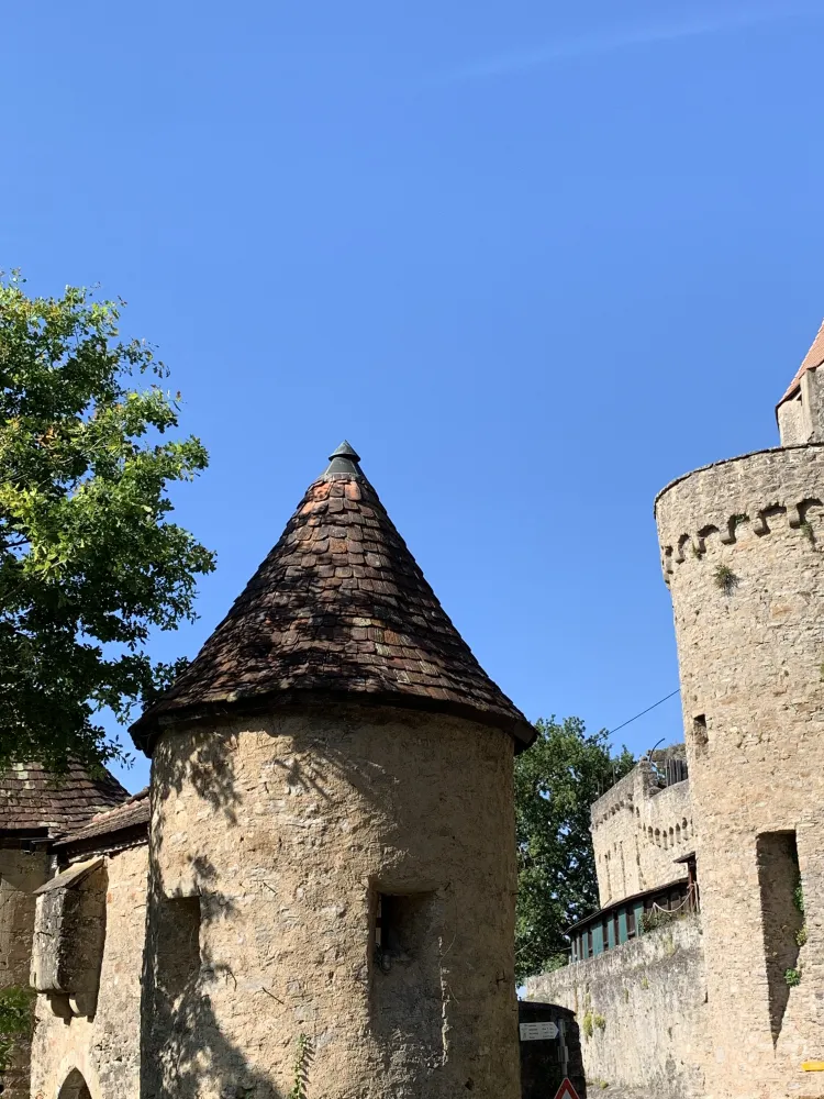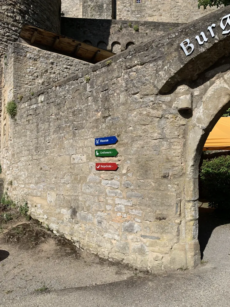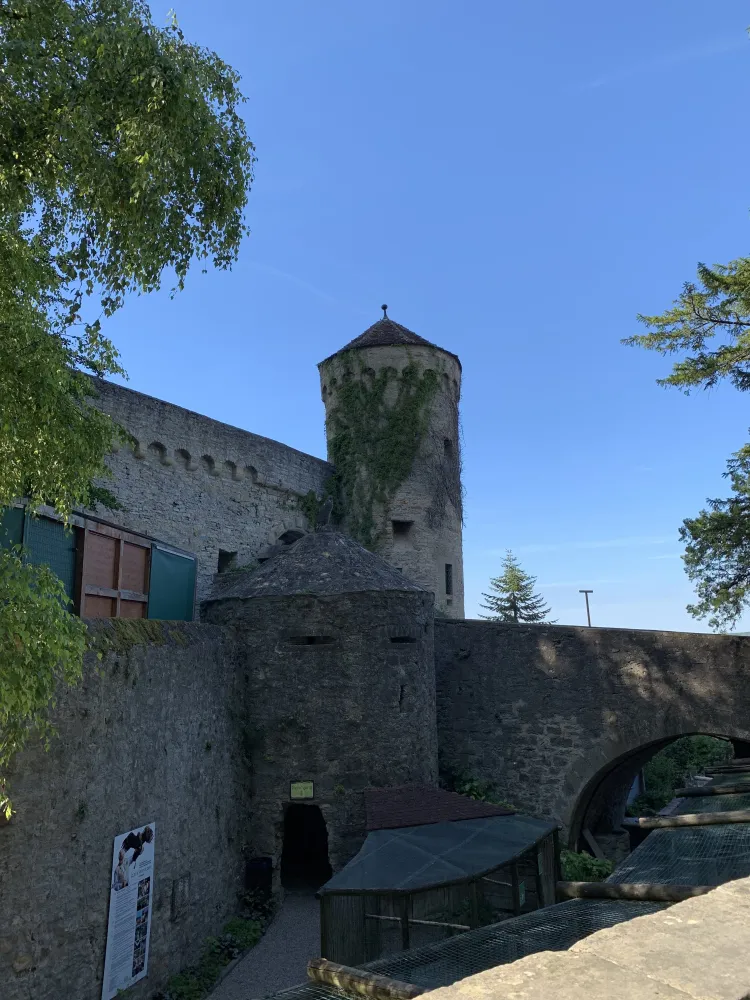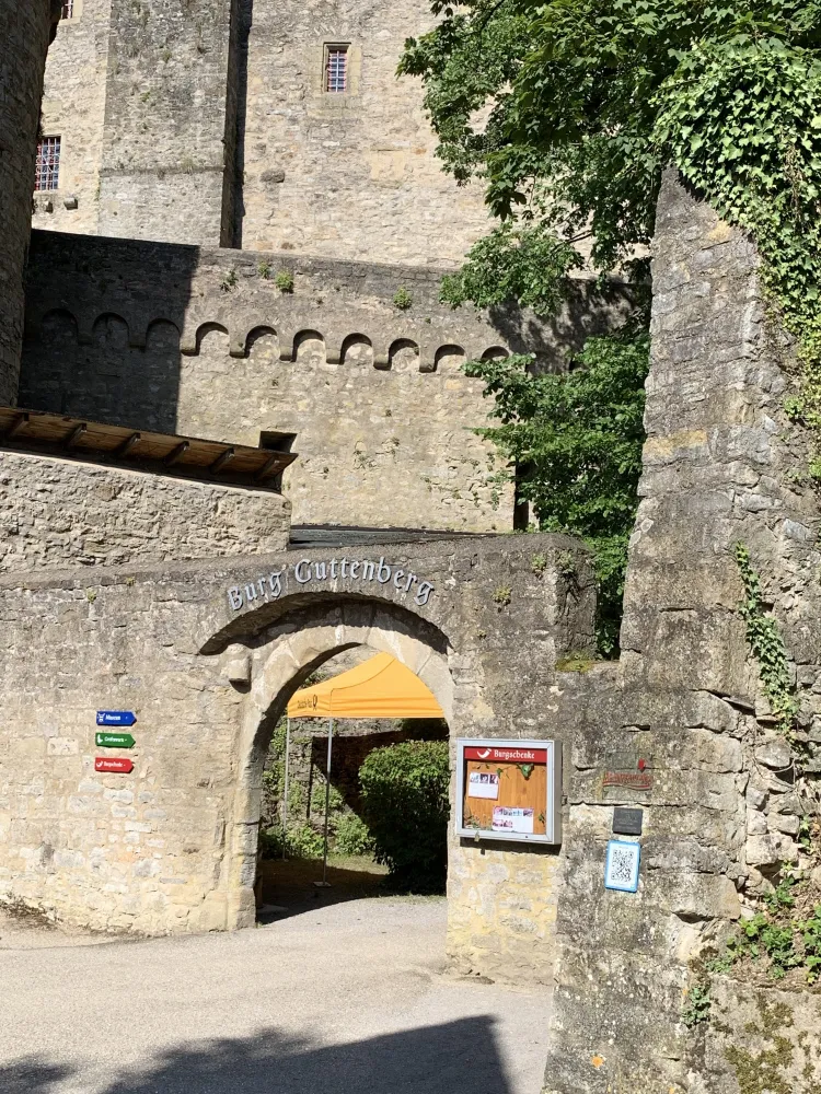 Guttenberg Castle is one of the oldest and most beautiful castles in Germany. It is located high above the romantic Neckar Valley, idyllically surrounded by vineyards in the Neckarmühlbach district of Haßmersheim. I visited Guttenberg Castle in the summer, which is one of the last undestroyed Staufer castles in Germany. It has been inhabited since 1449 by its owner family, the Barons of Gemmingen, now in their 17th generation. I parked my car in the parking lot in front of the castle and was immediately impressed by the sight of the mighty keep. I walked through the archway and after a few minutes reached the castle tavern, where knight’s feasts are regularly held and whose viewing terrace offers a wonderful view over the vineyards into the romantic Neckar Valley. The castle tavern has three differently designed rooms with space for 200 people. Guttenberg Castle also has its own registry office in the fountain house and a beautiful castle chapel. This makes it the ideal place to get married. What woman wouldn’t want to feel like a princess on the happiest day of her life and marry her Prince Charming in a romantic castle? Guttenberg Castle is truly a dream setting for a fairytale wedding. After visiting the castle chapel, we went to the heart of the German Bird of Prey Sanctuary. Spectacular flight demonstrations by large birds of prey take place here twice a day. Eagles, vultures, and eagle owls fly high above Guttenberg Castle. The huge birds, with a wingspan of over two meters, such as monk vultures, griffon vultures, white-tailed eagles, golden eagles, and imperial eagles, can be admired in free flight during the show, which is almost unique in Germany. The German Bird of Prey Sanctuary also offers falconry lessons and bird of prey sponsorships and is involved in species conservation. Birds in care are prepared for controlled wild flight through targeted flight training. In the castle museum, I was able to experience the exciting and adventurous life of the Middle Ages up close. I immersed myself in a bygone era with knight’s armor, weapons, and a creepy torture chamber. I experienced a journey through time from the Middle Ages to the 19th century in the exhibition “Life in a Knight’s Castle,” which led to the 40-meter-high tower. From the platform of the tower, my gaze wandered over the Neckar Valley and the neighboring castles. Guttenberg Castle is also famous for its wooden library, a collection of 93 volumes that look like books and feature almost all native wood species, including dried leaves and fruits. In addition, below Guttenberg Castle is a medieval hostel called “Zum Marstall,” where anyone can stay like the knights of old in the large knight’s camp on camp beds or in 14 boudoirs. I felt the flair of the Middle Ages and was fascinated by the history of Guttenberg Castle, which was revealed to me during my tour. The sight of the historic walls and the mighty keep alone were impressive.