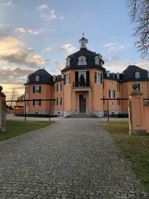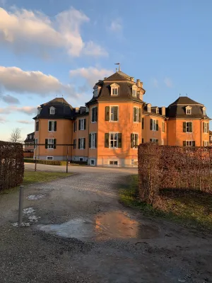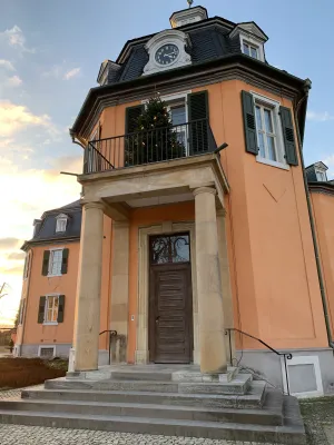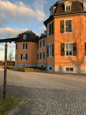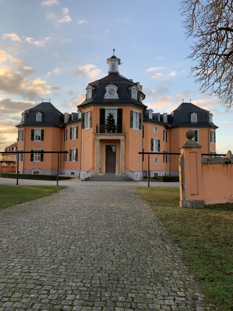 Who wouldn’t want a small castle with a beautiful garden surrounded by nature? Such a wonderful castle can be found in Waghäusel on Schlossplatz. This castle is a hermitage. The word comes from French and means hermitage. This type of castle was intended to serve as a private retreat. Its style was influenced by none other than the French King Louis XIV, who went down in history as the Sun King. Characteristic of this type of castle was its relaxed design in the form of a main building surrounded by pavilions. The hermitage, located in the immediate vicinity of the pilgrimage church and monastery, was intended to offer the prince-bishops of Speyer both peace and quiet for religious exercises and relaxation through hunting. The foundation stone for the Baroque hunting lodge and pleasure palace was laid on September 26, 1724, by Prince-Bishop Damian Hugo Philipp von Schönborn. The first complex of the Waghäusel Hermitage was designed by master builder Michael Ludwig Rohrer from Raststatt and built between 1724 and 1729. The main building was located in the center of a walled path system with eight hermit pavilions between the main paths. The original main building was hexadecagonal. Above the actual attic of the main building was a belvedere hall with a ring of windows and sixteen chimneys on the outer wall. Around 1732, the Italian fresco painter Giovanni Francesco Marchini painted a ceiling fresco there. It depicted the interior of a hermit’s hut built in Roman ruins. Thanks to its architectural beauty, the Hermitage also became the model for Clemenswerth Castle in Emsland and the hunting lodge on Carlsberg near Weikersheim. In 1730, Prince-Bishop Damian Hugo von Schönborn had four two-story cavalier pavilions with a square floor plan built in place of the small hermit’s huts, which were connected by a ring wall. The southern pavilion was intended for the kitchen, the northeastern one for the guard on horseback and on foot, and the two western ones for the princely guard. To the west of the complex were the farmyard with a tithe barn, the official wine cellar, stables, a guard room, a hunter’s lodge, a gardener’s lodge, a customs house, and two ponds. In 1747, the Prince-Bishop of Speyer, Franz Christoph von Hutten, commissioned the architect Balthasar Neumann to extend the main building of the Hermitage. Neumann added four new wings to the main building, creating the current cruciform layout. The prince-bishop’s apartments and a house chapel were located on the ground floor. The four cavalier houses were also extended, namely by adding the rear sections outside the ring wall. This gave them their rectangular floor plan. Under the Prince-Bishop of Speyer, Damian August von Limburg-Stirum, the clock and bell tower were added to the entrance area of the main building in 1783, as was a wrought-iron balcony above the open staircase. With the Reichsdeputationshauptschluss (Imperial Deputation Main Resolution) of 1803, the Bishopric of Speyer was dissolved, and its part on the right bank of the Rhine, including Waghäusel, fell to the state of Baden. The last Prince-Bishop of Speyer, Philipp Franz Nepomuk Wilderich von Walderdorf, retained the right to reside in the castles of Bruchsal and Waghäusel until his death in 1810. The Hermitage, for which no use could initially be found, escaped auction for planned demolition only thanks to the efforts of Privy Councilor Bürklin. In 1837, the Baden Society for Sugar Production purchased the approximately 13-hectare castle complex from the state of Baden and built the Waghäusel sugar factory, which remained in operation until 1995. The first production buildings for sugar manufacturing were built on the former farmyard. Over the years, all the Baroque farm buildings had to make way for new industrial buildings. However, the basic layout of the Baroque complex and some remnants of the path axes were surprisingly clearly preserved in the structure of the factory complex. Between the factory buildings, only the main Hermitage building, which was used by the factory administration, and the cavalier houses, which served as factory apartments, remained intact. The factory directors lived in the southwestern building for a time. This was extended again in the 1870s and given a veranda in the delicate winter garden architecture style of the Wilhelminian period. The northwestern cavalier house was demolished in 1968 to make way for a molasses tank. The remaining three cavalier houses escaped the planned demolition and were renovated between 1988 and 1992 with funds from Südzucker AG, the city of Waghäusel, the Baden-Württemberg Monument Foundation, and the State Office for the Preservation of Historical Monuments. The main building remained largely unchanged. In 1860, the management of the sugar factory set up a prayer room on the ground floor with its own entrance and later its own church bell for the Protestant employees, who were a minority in the predominantly Catholic area. It was used until the completion of the Waghäusel Peace Church in 1967. It was not until a major renovation in the 1920s that the Baroque staircase with its iron canopy architecture was removed, the cellar under the entrance area was filled in, and the current neoclassical entrance was created. Inside, the original room layout was changed and false ceilings were removed, creating a three-story domed hall in the center of the building, where Marchini’s ceiling painting could be seen from the first floor. Unfortunately, this was destroyed by fire in 1946, as was the historic roof structure. In 1997, Südzucker AG sold the sugar factory site, including the Hermitage, to the town of Waghäusel, which carried out extensive renovation work on the listed castle complex over a number of years with subsidies from the state of Baden-Württemberg. First, the roofs, windows, plinths, plasterwork, and paintwork of the main building were renewed. In 2004, the rotunda of the 