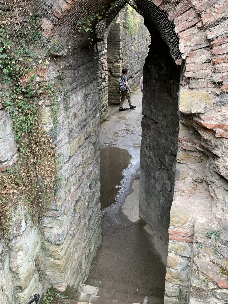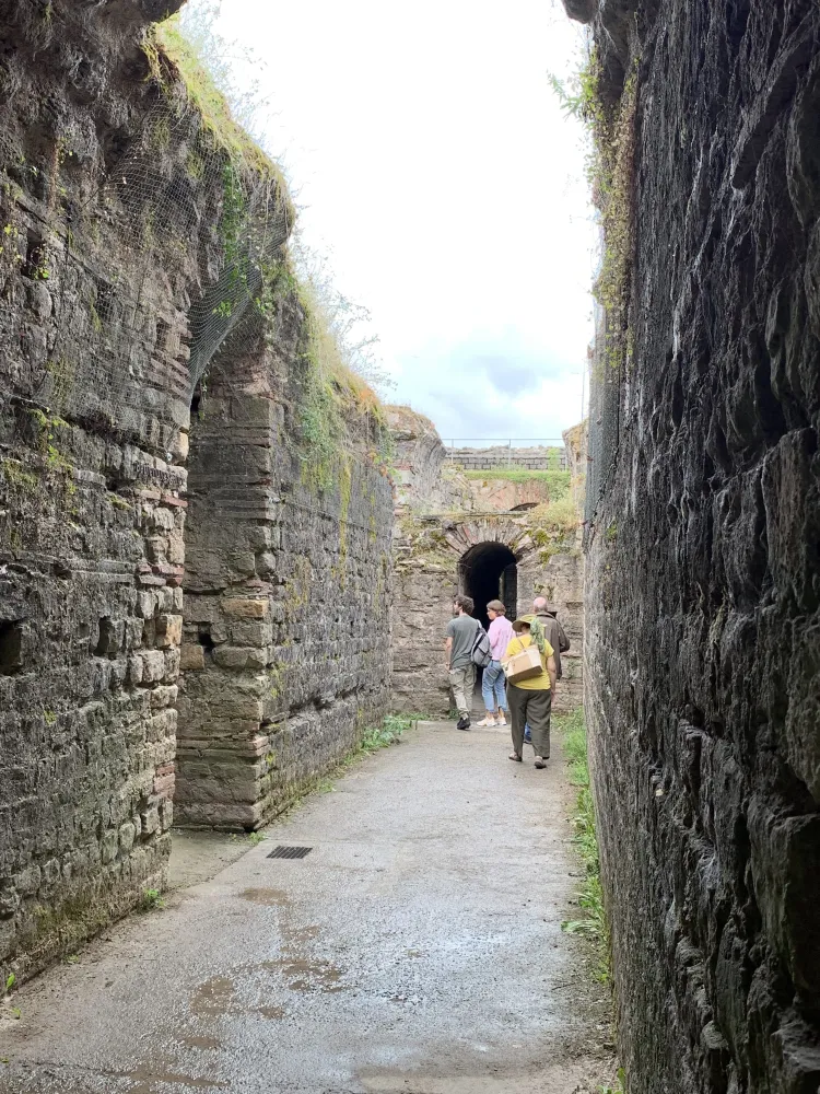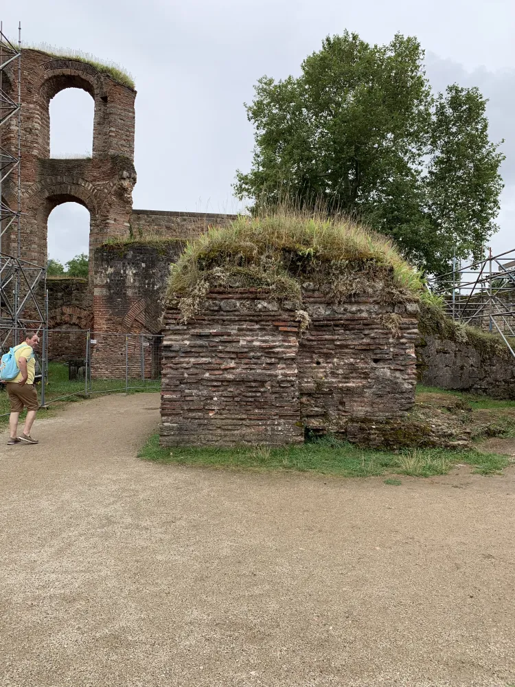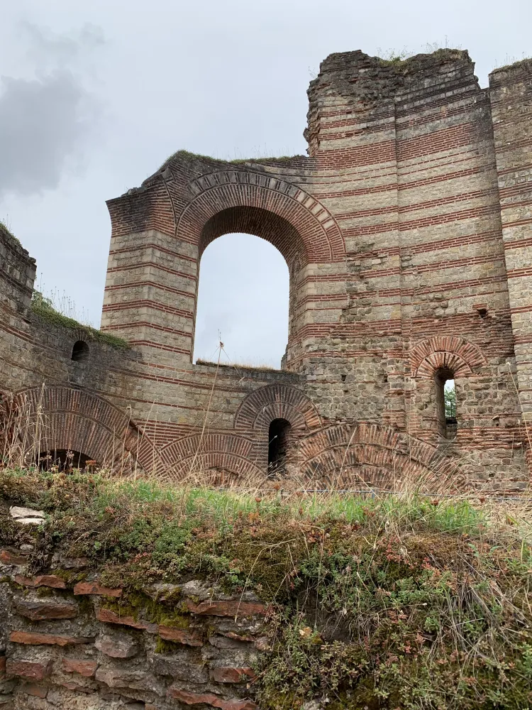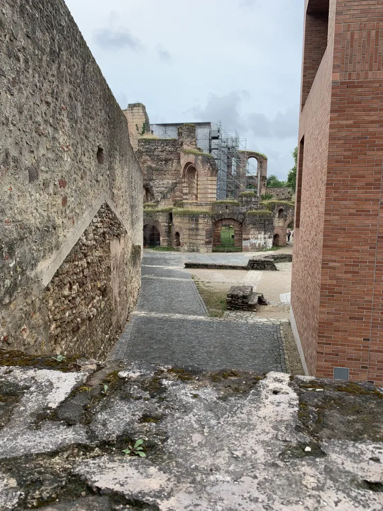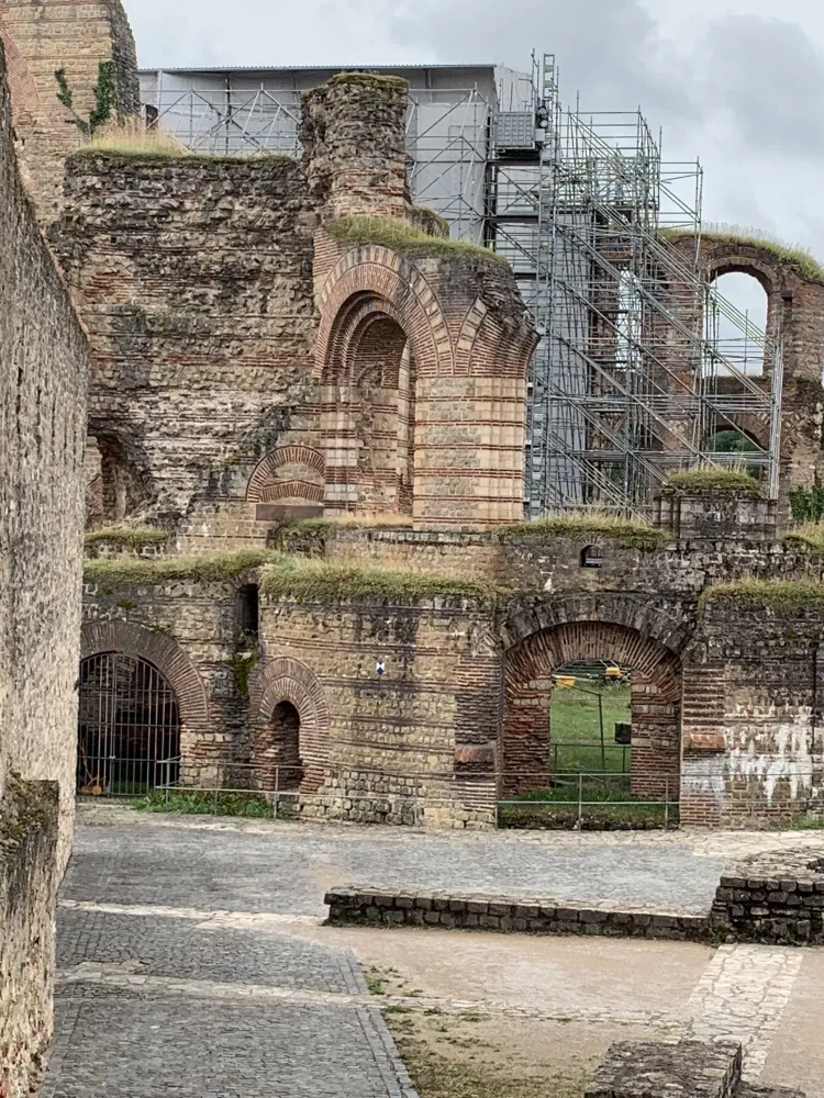 In the Roman city of Trier, I visited one of its main attractions, the Imperial Baths, which were planned as one of the largest bathing facilities in the Roman Empire. The late antique building represents the period from the 4th to 5th centuries, when Trier was the imperial residence and thus one of the most important metropolises of the Roman Empire. The Imperial Baths, with their bathing hall, sauna, massage rooms, and promenade halls, were intended to serve as a place of relaxation for the Roman elite. However, they were never completed in their originally planned function. They have been designated a UNESCO World Heritage Site, and I set out to explore the mighty ruins with their underground labyrinth. My first stop took me to the warm bath hall, the caledarium, which is now occasionally used for events and can seat up to 650 people. From there, I went to the cold bath area. In Roman times, a visit to the thermal baths began with cleansing the skin with oil, followed by baths of varying temperatures, massages, and sweat baths. Medical treatments and operations also took place in the thermal baths. This explains the complex sequence of rooms in the Imperial Baths. The largest hall was originally intended to be a cold bath, or frigidarium. After the original construction plan was abandoned, it was completely demolished. I marveled at the walls visible today on the site, which were reconstructed according to this plan. The same applies to the wide curved wall, where one of the water basins, piscina I, was planned. I then walked to the intermediate wing. This formed the transition as a lukewarm wing, tepidarium, with bathing rooms on both sides of the rotunda between the warm and unheated bathing areas. Floor and wall heating was planned for the round hall. After the cold bath wing was demolished, the rotunda became the new entrance hall. I discovered the original door thresholds and felt transported back to a bygone era. The second main hall of the thermal baths was equipped with underfloor heating and was intended as a warm bath, caldarium. Here, too, there was a semicircular, heated water basin, piscina II, in each apse. I recognized a whole series of fireplaces around the large apse, which were intended for heating under the water basin. These were fired outside the room. The hot air could circulate under the pool and the floor. Today’s floor is below the level of the ancient floor. Because the underfloor heating, hypocaustum, alone would not have been sufficient to achieve the desired bathing temperature of 40 °C, additional boiler stoves were necessary for hot water production. They were to be installed in the corner buildings planned as boiler houses. This part of the building owes its good state of preservation to its continued use in the Middle Ages. A fortified residential tower, the Alderburg, was later built into the corner of the Roman caldarium. When the medieval city wall was extended to the Alderburg in the 12th century, the large Roman window arches were bricked up. In the southern apse, a city gate, Alderport, was set up with one of the Roman windows as a passageway. I reached the underground supply tract via a staircase from the so-called “public level.” In ancient times, the supply tract was not intended for public use. For the operation and maintenance of the thermal baths, there was an elaborate system of service corridors below floor level. There, the staff had access to numerous chambers with fireplaces, praefurnium, and underfloor heating. The sewage channels, cloaca, which were also necessary for the operation of the thermal baths, run for long distances directly under the service corridors. The drain belongs to the semicircular basin of the frigidarium. The water supply for the entire complex was to be provided by a 13-kilometer-long pipeline from the Ruwer River via a branch at the amphitheater. From the semicircular corridor, I looked into a preserved excavation site, the private bath of the town house, domus, from the time before the baths were built. The small brick pillars that I saw on the right in the niche were part of the underfloor heating, hypocaustum, and supported the actual floor. After leaving the underground part of the complex, I reached the small bath, balneum. This smaller bathing complex was built after the thermal baths project was finally abandoned in the late 4th century. Its front faced today’s palace garden. An open portico with columns bordered the neighboring Roman road. Although the thermal baths adjoin the Basilica of Constantine, they face the forum in the direction of the Moselle. The main front with the entrance faced today’s Weberbach street. From there, open colonnades, porticus, led to a large open area for sports and games, the palaestra. After the thermal baths project was abandoned, this space was expanded and used for other purposes. I was fascinated by the Imperial Baths, which can be described more as a building ruin, as they were never used for their intended purpose. Unfortunately, the project came to a standstill when Constantine I shifted his major political activities to the East. It was not until the 360s that construction work was resumed under Valentinian I. The emperor had part of the complex demolished and the rest completed as a reception or drill hall without the installations for bathing. The barracks-like conversions around the inner courtyard date from this period. In the Middle Ages, a noble family from Trier settled in the dilapidated main building and converted it into Alderburg Castle. The Church of St. Gervasius and the Agnetenkloster monastery were built in another part of the ruins. Due to this dense overbuilding, the overall architectural concept of the thermal baths was not recognized until the beginning of the 20th century. It was only after the destruction of World War II that the formerly built-up site could be excavated and extensively investigated between 1960 and 1966. Today, the 