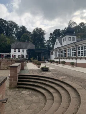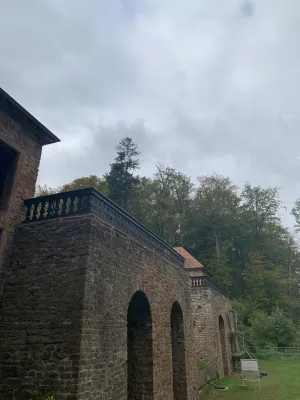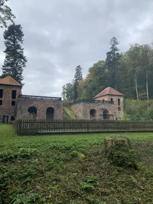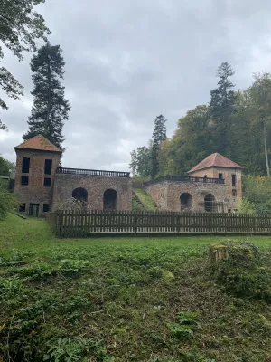 The romantic Landschloss Fasanerie hotel is located in the heart of the Fasanerie recreational area. Not far from there, the remains of the Tschifflick pleasure palace of the late Polish king and Grand Duke of Lithuania Stanislaus I Leszczynski can still be seen today. He was granted asylum in Zweibrücken in 1714 by Charles XII, King of Sweden and Duke of Palatinate-Zweibrücken. The deposed Polish king arrived in Zweibrücken on July 4, 1714, together with his wife, his two daughters, and his court to Zweibrücken on July 4, 1714, where he initially resided under the alias Count Kronstein in a prestigious building in the upper town until his country castle, designed by Swedish architect Jonas Erikson Sundahl, was completed in 1716 in the middle of the forest with impressive gardens and water features. The Polish king christened this small pleasure palace with the Turkish name Tschifflick, which means “country estate” and was a tribute to his time in exile in Turkey. Stanislaus’s older daughter Anna was particularly fond of the estate in the middle of the forest, where she would go for hours-long walks. One day, she met the shepherd boy Leander under an ancient beech tree. The two fell madly in love and met every day under the beech tree. This came to the attention of her father, who was furious and forbade Anna from having any contact with the shepherd boy, who was not of her social standing. Anna fled the country castle despite the storm and sought shelter under the beech tree. But as fate would have it, she was killed by a falling branch right there. When her lover learned of her death, he took his own life. Since then, an oak tree has grown next to the beech tree. The two trunks appear to have almost merged together and can still be seen today. Such is the legend of Zweibrücken’s tragic lovers, which has never been proven. But what is certain is that Stanislaus’s older daughter Anna did indeed die unexpectedly in Zweibrücken on June 20, 1717, and was subsequently buried in the monastery church of Gräfinthal, a favorite place of the family. The Polish king had to vacate the country castle as early as 1719, as Charles XII died on December 11 and the Palatinate-Zweibrücken, ravaged by war and poverty, was unwilling and unable to bear the immense costs of maintaining the court of the Polish king in exile. Stanislaus then sought refuge in Wissembourg in Alsace and in Landau. His younger daughter Maria married the French King Louis XV in 1725, as a result of which Stanislaus received the Duchy of Liechtenstein. The country castle was completely finished in 1728 under Duke Gustav Samuel Leopold, but fell into disrepair due to lack of maintenance. The country castle and park were revived on the orders of Duke Christian IV, who had a pheasantry built in the garden area between 1757 and 1769, giving rise to its current name, “Fasanerie” (pheasantry). After that, the country castle fell into disrepair again, and in 1887, the city of Zweibrücken finally bought the entire area and revitalized it with a restaurant, which is now a hotel. In the 1970s, the wild rose garden opposite the current hotel was laid out. At the same time, the ruins of the 12th-century tower castle were found and subsequently excavated. Today, the Tschifflick ruins, together with the hotel and the picturesque wild rose garden, are one of the tourist hotspots of the Palatinate rose town of Zweibrücken, which I also visited and immersed myself in a bygone era.