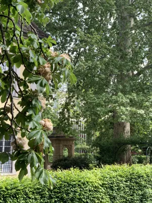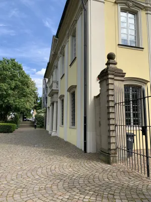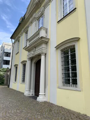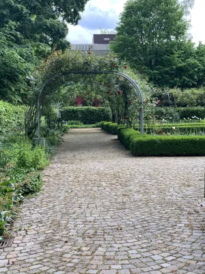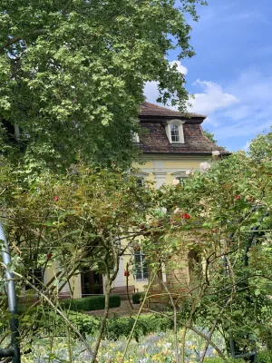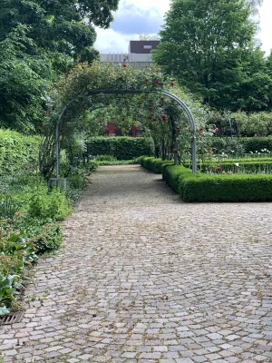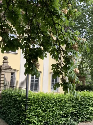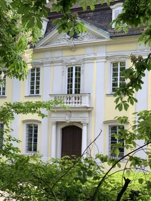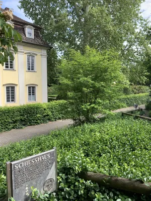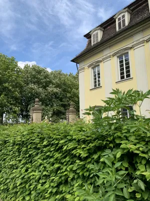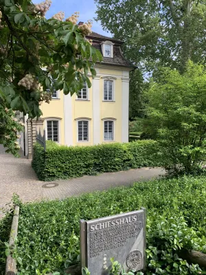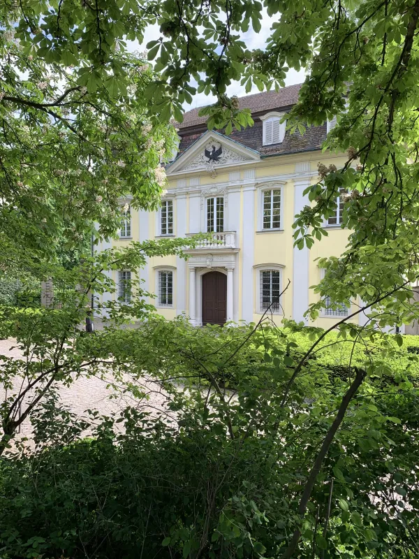 Heilbronn, the lively little city on the Neckar River, where 125,000 residents enjoy urban flair paired with Swabian hospitality, is always worth a visit for me. Surrounded by rolling hills, the city has been growing wine for more than 1,250 years and is not only the oldest wine town in Baden-Württemberg, but also charms visitors with its few but very beautiful historic buildings, such as the Schießhaus. This building, not far from the main train station and Theresienwiese, is a true architectural gem and, thanks to its unique ambience, a perfect location for special events. The building was designed in 1770 by Christoph Keller, the Baroque architect of the Teutonic Order, in the Rococo style and built on the Hammelwasen fairground. The Schießhaus was originally used as a shooting range. In addition to shooting festivals, the Heilbronn horse market has also been held at Hammelwasen since 1770. For this reason, the Schießhaus was also the hall building for the Heilbronn horse market. Since its construction, this historic building has served numerous purposes. Its richly decorated 120-square-meter hall, with stucco work by Mannheim stucco artist Johann Sigismund depicting allegories of the four seasons of trade, crafts, hunting, and agriculture, became famous in Heilbronn and is still considered the most beautiful ballroom in the city today. In addition, paintings by Stuttgart theater painter Sebastian Holzhey can also be admired in the Rococo castle. I must say that I was immediately enchanted when I saw the Rococo castle with its avenue of trees and park benches on the forecourt. The garden behind it, with its romantic pavilion surrounded by a sea of roses, was fantastically beautiful. I felt like a little princess strolling through her garden. It was a little trip into a fairy-tale world. The two-story Rococo building with its magnificent flower garden can be rented for events and is simply gorgeous.