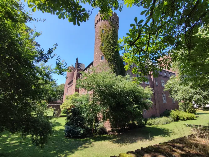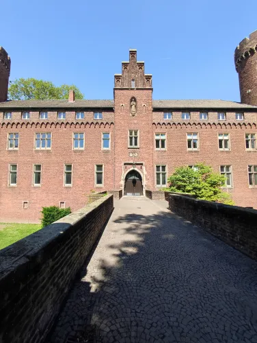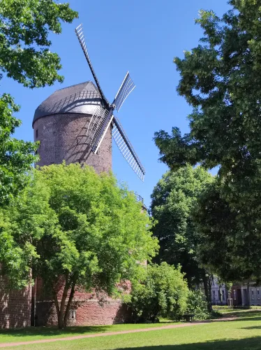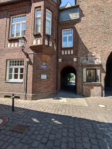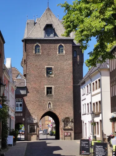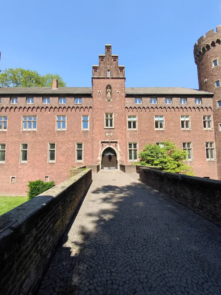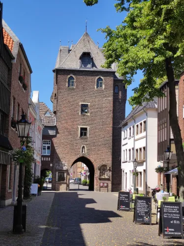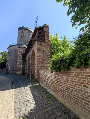 I experienced a journey back to the Middle Ages in the picturesque town of Kempen on the Lower Rhine. In the Middle Ages, Kempen was a proud fortified town, as evidenced by the Peterturm tower, the Kuhtor gate, the Turmmühle mill, parts of the town wall, and the Kurkölnische Landesburg castle. From 1290 onwards, the village settlement of Kempen was fortified with a moat, earth wall, and palisades on the orders of the sovereign, Archbishop Siegfried von Westerburg. In doing so, the people of Kempen helped their sovereign with his security policy, as he had suffered a bitter defeat in the Battle of Worringen in 1288 and now wanted to secure his borders. In 1294, the archbishop granted the people of Kempen town rights in return for their support. The final fortification of Kempen was completed between 1320 and 1370. At that time, Kempen was enclosed in an almost circular shape by a 1,830-meter-long and 7-meter-high wall with four gates and four towers. After the ring wall was extended, 16 semicircular towers were added in front of it, which ended in a straight line on the town side with the course of the wall. Two moats enclosed the town area, known as the Kempener Rundling, from the outside. Finally, a windmill was erected on the ramparts. This tower mill, with a diameter of 8.70 meters, was built in 1481 on the south side of the town on a three-story ladder bastion. It was used to supply flour in the event of an enemy siege. Not far from this is the Peterturm, which is a remnant of the Peterstor. The name derives from the fact that the gate once led to St. Peter’s Chapel. The Peterstor was one of four entrances to the town. These were all monumental gate towers consisting of a square main tower with bastions in front, which were equipped with towers and gates. The most heavily fortified gate was the Kuhtor, of which only the gate tower remains. Its name comes from an old cattle track that led to pastures in the northern marshes. Above the gate passage is a statue of St. Nicholas. This is a reminder that from there you could reach St. Nicholas Chapel at the border crossing to the Duchy of Gelderland, which was called “Schloot.” The current appearance of the Kuhtor dates back to the years 1896 to 1898. The different brick colors clearly show where the third floor with its Gothic towers was added. The heart of the fortress was the Electoral Cologne Castle. Built between 1396 and 1400, it was intended to be a stone symbol of power for the rule of Cologne Archbishop Friedrich von Saa. To this day, his cross coat of arms still adorns the entrance. A noble official resided here as the representative of the sovereign, ensuring law and order in times of peace and defending the Kempen region in times of war. In 1634, the medieval castle with its embrasures and small hatches was converted into a palace with the installation of large windows. The frame of the drawbridge is still visible today. From 1863 to 1925, the Electoral Cologne castle housed the Thomaeum Gymnasium. The statue of Thomas of Kempen above the main portal commemorates this period. From 1929 to 1984, the castle was the seat of the district administration. Today, it still houses the district and city archives. My visit to the city of Kempen with its listed historic old town center allowed me to walk in the footsteps of the Middle Ages.