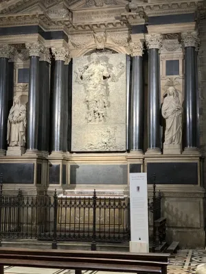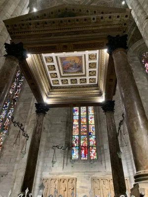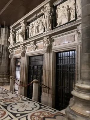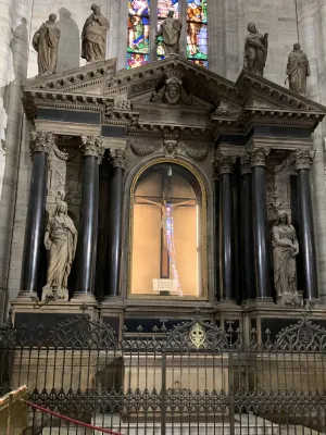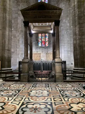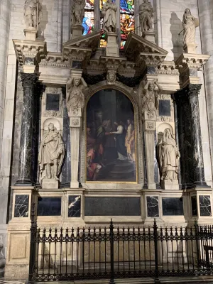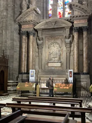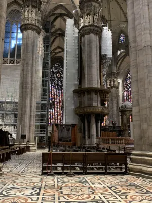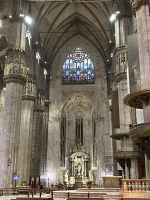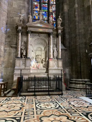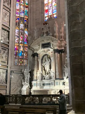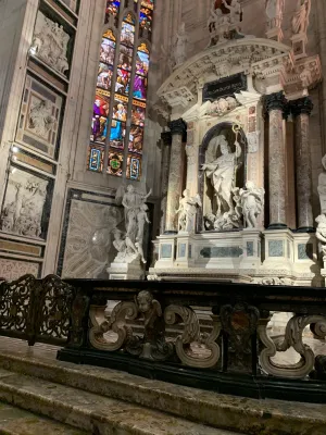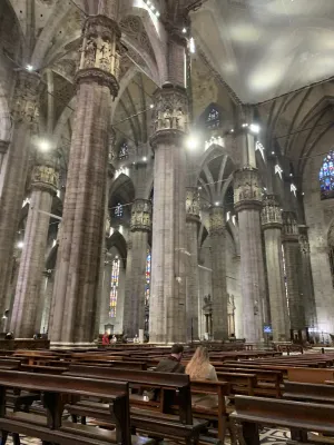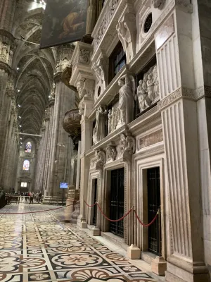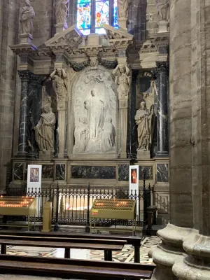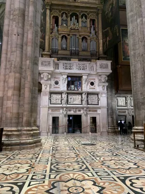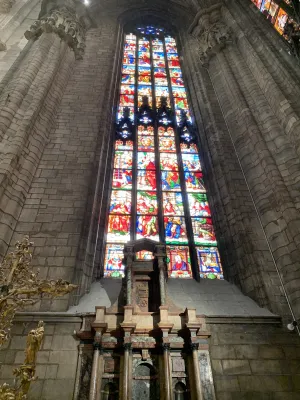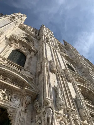 My personal highlight of Milan’s wonderful sights was, unsurprisingly, Milan Cathedral. The Cathedral of Santa Maria Nascente, which shines in white Candoglia marble from Lake Maggiore, is the most significant work of Gothic architecture in Italy. From the very first moment, I was fascinated by this majestic building, which is one of the largest cathedrals in Europe and over 600 years old. The cathedral stretches to an incredible length of 157 meters and is gigantic with its five naves. Construction of the cathedral began in 1386 under the rule of Gian Galeazzo Visconti. The facade of the cathedral was built in the classical Baroque style from 1567 onwards, but due to the long construction period, it incorporates a variety of styles. It was not until 1805 that work on the facade was completed. The construction of the turrets continued into the 19th century. The facade, consisting of five gates and the windows above them, is divided by six pillars representing the five naves. The facade is 56.5 meters high in the middle and has pillars richly decorated with figures, which are topped by the towers. I was very excited to see the interior of this architectural masterpiece and had already bought a ticket online in advance so I wouldn’t have to wait in line. This is really convenient and saves time, especially in summer. After a quick bag check, the moment had finally arrived. I entered the cathedral in awe and was immediately overwhelmed by its beauty. The hand-painted stained glass windows, which radiated an incredible vibrancy thanks to the light shining through them, were particularly beautiful to look at. These window panes tell biblical and religious stories. The oldest original glass panes date back to the 16th century. My second glance fell on the magnificent floor, which is decorated with marble and stone inlays. A brass meridian line runs across it. At noon, a ray of sunlight shines through a small hole in the dome roof directly onto the line, which was installed in the 18th century, indicating the day and the signs of the zodiac. The meridian was designed in 1786 by astronomers from the historic Brera Observatory. I was very impressed by the magnificent interior of the cathedral and made my way to the crypt and the cathedral treasury. Beneath the crypt is the chapel of San Carlo Barromeo, who lies in a lead glass sarcophagus. This archbishop of Milan consecrated the cathedral in 1572 with the name Santa Maria Nascente. The ceiling and walls of the crypt depict scenes from the life of Saint Borromeo, which I was able to view at my leisure, as the cathedral was fortunately not very busy during my visit. Another staircase led me to the remains of the 4th-century baptistery tower in Sant’Ambrogio, the patron saint of Milan, who later baptized Sant’Agostino. Beneath the crypt is also the legendary cathedral treasure, whose walls are decorated with magnificent tapestries. After thoroughly exploring the crypt, I marveled at the organ in the church interior. With its 16,000 pipes, it is one of the largest organs in the world and was once played by the renowned organist Johann Sebastian Bach. The cathedral’s greatest relic, the Holy Nail and a splinter of the cross of Jesus Christ, is located above the main altar at a height of 45 meters. According to legend, the nail was found by Saint Helena, the mother of Emperor Constantine, and used as a horse halter for the emperor’s horse. This relic is honored by a holy procession that takes place every year between September 10 and 15, during which the Archbishop of Milan is lifted up with the Nivola to the casket containing the Holy Nail and brings it down. The Nivola is a cloud-shaped elevator painted with angels and clouds. The Holy Nail is displayed in the cathedral and raised again by the archbishop with the Nivola in a sacred ceremony. Another highlight besides this sanctuary are the cathedral terraces. These cover an area of 8,000 square meters and offer a close-up view of the 135 spires, which was an incredible experience for me. The cathedral terraces can be reached either by lift on the north side or on foot, climbing 200 steps. Either way, the view stretches across the entire city to the Alps. But it’s not just the panorama that is breathtakingly beautiful, but also the view of the 3,400 statues that sit enthroned on the cathedral spires. Incidentally, the first tower was built on the west side in honor of the merchant Marco Carrelli, who bequeathed his entire fortune to the cathedral. On the highest tower of the cathedral is the Madonnina, a 4.16-meter-high golden statue that shines as brightly as the sun at a height of 108 meters. The golden Madonnina was completely reconstructed in the 1960s and 1970s, as well as from 2010 to 2011, because its iron skeleton had rusted. The entire structure weighs over 900 kilograms. The design of the cathedral dome, made of white marble, is by the Italian architect and painter Donato Bramante. He wanted his design to symbolize the upward striving. Milan Cathedral, with its basic shape of a Latin cross, is truly incredibly beautiful and absolutely unique. The cathedral is supported by 52 columns, each 24 meters high and 3.40 meters in diameter, which together with reinforced concrete support the building, connecting the foundation walls with the columns. The semicircular sanctuary stands at the center of the cathedral. A total of 40,000 visitors can be accommodated inside on a floor space of 11,700 square meters. Milan Cathedral is a real tourist magnet, attracting over 10,000 visitors from all over the world every day. It is rightly one of Italy’s most famous buildings and a must-see on any visit to Milan. I was simply happy to have visited this spectacular building, which is so rich in cultural treasures and art. For me, it was a priceless experience, and I will conclude with the words of Irish writer Oscar Wilde: “Thinking is wonderful, but experience is even more wonderful.”