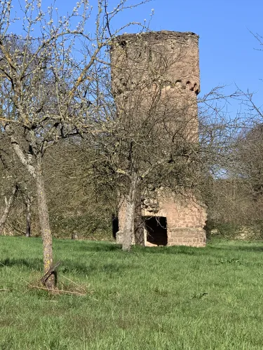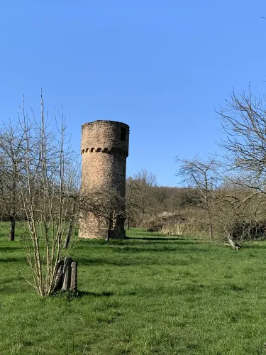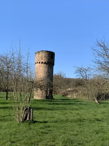 The Middle Ages are often associated with a dark era and a harsh time in which people had to contend with many problems. During this period, monasteries were considered centers of political and religious life. There was once such a monastery in Odenheim. Today, only two defensive towers remain, standing in the middle of a green meadow in the Katzbach Valley near Odenheim, a village in the district of Karlsruhe. I set out to search for traces of this long-forgotten time and the history of the monastery. The Benedictine monastery was founded in 1108, and in 1338 Prince-Bishop Gerhard von Ehrenberg purchased the bailiwick rights of the monastery and the village of Odenheim for the Bishopric of Speyer. In 1494, with the approval of Pope Alexander VI, the monastery was converted into a free imperial knight’s monastery and, following disagreements, was relocated to Bruchsal in 1507. This marked the end of over 400 years of monastic history at this location. In 1525, the complex was destroyed in the Peasants’ War and only rebuilt in 1670. The property fell to the state of Baden in 1803 and the demolition of the church and the prelates’ chapel was ordered. A farmstead, the so-called Stifter Hof, was built on the site of the former monastery, which is now used by the Augustenberg Agricultural Technology Center. The only remaining evidence of the former monastery are the two towers, which were part of a fortified enclosure wall designed to protect the monastery against warring feuds. I made my way to the northeast tower, which is almost completely preserved except for the roof. It served as a prison in the Middle Ages. Only fragments of the southwestern tower are still visible. It served as a water tower and was probably located in a moat and could only be reached via a bridge. Both towers have slit embrasures on the sides facing the attack. Inside, the defensive towers were secured by access hatches, locking holes, and defensive plates. A path also led me to the estate, where I discovered an old building on the right. This is the storage building from the monastery era, which was located next to the former main gate on the south side of the complex. The coat of arms of Abbot Dietrich von Angelloch, who had the building constructed, is still visible today on the courtyard side. The storage building, measuring approximately 33 by 12.50 meters, rests on several transverse vaults and features ashlar masonry, which consists of roughly hewn natural stones on the front. The masonry is up to 86 centimeters thick. The monastery towers and the storage building are true witnesses to history, with a long and eventful past. I enjoyed my brief excursion into the Middle Ages, an era that is still considered a dark time due to wars, diseases, and oppression. But it also stands for the founding of universities, the flourishing of cities and thus the rise of trade and crafts, as well as the slow replacement of the supremacy of the church.