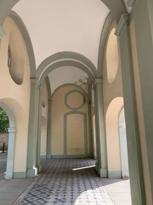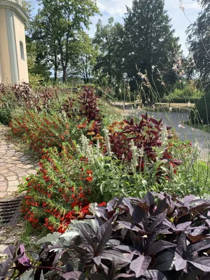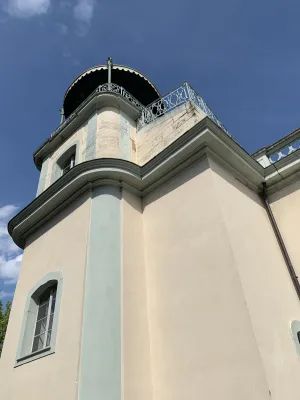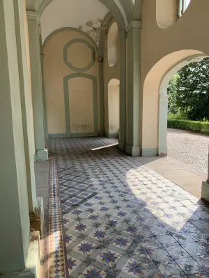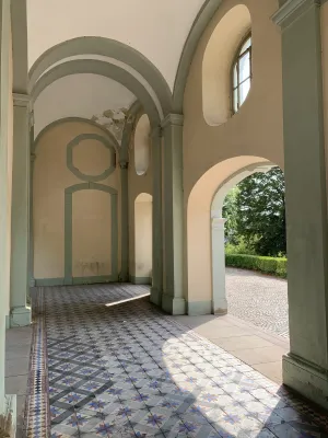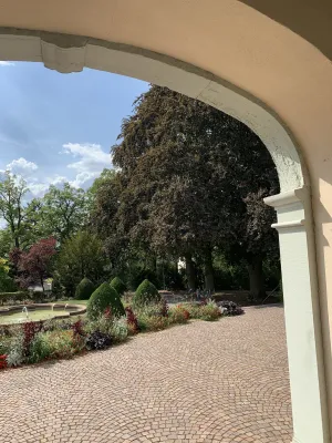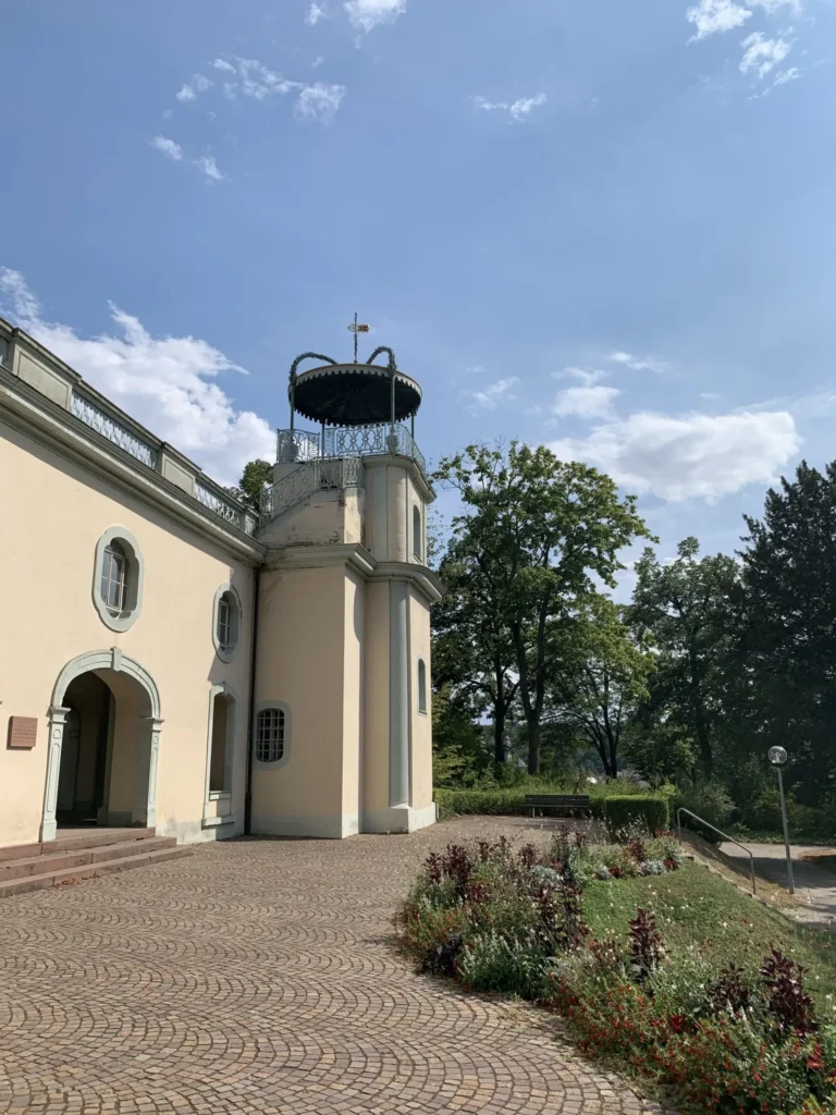 Bruchsal is the largest town in the district of Karlsruhe and is known not only as the asparagus town due to its largest asparagus market in Europe, but also as a baroque town due to its baroque palace. But Bruchsal is not only home to the magnificent Baroque palace, but also to a beautiful Rococo building, the Belvedere. It is located on the edge of the beautiful city garden on a quiet hill on the Steinsberg, from where you have the most beautiful view over Bruchsal and the Rhine valley. This extraordinary architectural monument was built in 1756 according to the plans of Leonard Stahl as a prince-bishop’s shooting lodge and pleasure house on behalf of Prince-Bishop Franz Christoph von Hutten zu Stolzenberg. I was immediately enchanted when I saw this Rococo building with its Chinese-style canopy towers, which were extremely en vogue at the time. Of course, I also wanted to enjoy the beautiful view, which is what Belvedere means in Italian. After extensive renovation in 2003, the Belvedere shines again in new splendor, and I entered the former hunting lodge and pleasure palace, which is used as a backdrop for open-air concerts by the “Sinfonieorchester 1837” and performances by the theater group “Die Koralle,” via an open, elongated hall. Its arcades gave me a wonderful view of the flower bed with a fountain. I then made my way to the viewing platform of one of the two towers and let my gaze wander into the distance, lost in thought. The Belvedere is an important example of Rococo architecture, offering a beautiful panorama over Bruchsal to the Rhine valley.