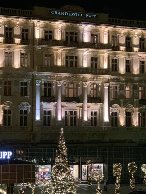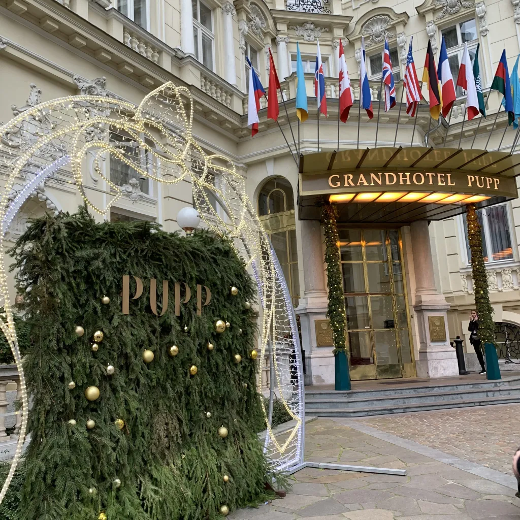 This year, one of my dreams came true. Not only did I visit the sophisticated spa town of Karlovy Vary in Czechia for the first time, I also stayed at the legendary Grandhotel Pupp. This luxurious 5-star hotel is located in the historic center of Karlovy Vary and has been a hot spot for the rich and beautiful since 1701. Not only have statesmen, artists, scientists, and famous actors stayed here, but the Grandhotel has also been the setting for well-known films such as “Last Holiday” with Queen Latifah and Gérard Dépardieu and the James Bond blockbuster Casino Royal with Daniel Craig and Eva Green. I was very excited about this traditional hotel, which, in addition to 228 rooms and apartments, houses an exclusive spa and wellness area, several first-class restaurants, the world-famous Becher’s Bar, and the most beautiful and luxurious casino in Czechia. The history of the Grand Hotel goes back three centuries. It all began with the construction of a large ballroom under the then mayor of Karlovy Vary, Anton Deiml. This ballroom was financially supported by the Saxon Elector Friedrich August. It was given the name Saxon Hall because many of the staff employed there came from Leipzig. The later mayor, Andreas Wenzel Becher, built a direct competitor hall on the opposite plot of land, the so-called Becher’s Lusthaus. In reference to the Saxon Hall, this quickly became the Bohemian Hall, as most of the staff came from Prague. The two halls stood at right angles to each other at the mouth of the Teplá river valley. Together with the house “U Božího oka,” built in 1730, which today houses the famous Café Pupp, these two buildings formed the basis of today’s Grandhotel Pupp. But before that happened, the Saxon Elector Augustus the Strong had a wooden theater built next to the Saxon Hall in 1717. In 1759, a great fire raged in Karlsbad and the town hall was severely damaged. From then on, the town council meetings were held in the Bohemian Hall. It was not until 1767 that the Pupp dynasty began, when master confectioner Johann Georg Pupp moved to Karlsbad. He married and, together with his wife Franziska, bought the Bohemian Hall. They built a park with an avenue of lime trees, which quickly became a popular spa promenade. The Bohemian Hall surpassed the Saxon Hall in popularity, which is why Philipp Valentin Keil opened the first publicly accessible restaurant in the Saxon Hall in 1801. However, a devastating flood destroyed the ground floor of the Bohemian and Saxon Halls and the beautiful park on the night of September 9-10, 1821. A year later, in 1822, both halls were completely restored and once again formed the cultural center of the spa town. After lengthy inheritance disputes following the death of Johann Georg Pupp, the first major renovation of the Bohemian Hall was carried out in 1831. In 1868, the Bohemian Hall belonged to the Pupp family again. In 1877, the Pupp brothers built a park hotel building, the first part of today’s Pupp, which flourished so much that it was extended by another wing. In 1890, the time had finally come and the Pupp family bought the Saxon Hall. The foundation stone for a new building was laid, and in 1892 the Grandhotel Pupp was built. The grand opening took place on May 13, 1894. In 1907, the hotel’s façade was unified in a monumental neo-baroque style by Viennese architects. Starting in 1923, every room was renovated to the highest standards with a toilet and a bathroom with hot water, which was revolutionary at the time. After the end of the war, the hotel was nationalized in 1945, which meant the temporary end of the Pupp dynasty in Karlovy Vary. From 1950, the hotel became the annual venue for the Karlovy Vary Film Festival, attracting famous personalities to Karlovy Vary. In 1951, the nationalization of the hotel bore fruit and the Grandhotel Pupp became the Grandhotel Moskva. During this period, the hotel’s fame faded more and more. It was not until 1964, after extensive renovation, that the hotel shone again in new splendor. After the occupation of Czechoslovakia in 1968 and the Velvet Revolution in 1989, the old name Grandhotel Pupp once again adorned the hotel facade. In 1992, a new era began for the hotel. The state-owned hotel was converted into a joint-stock company as a compromise with the Pupp family. Since then, the hotel has once again become the place to be, where everyone wants to see and be seen. In 2013, the hotel’s own exclusive balneo center and swimming pool were opened. Starting in 2018, all guest rooms were gradually renovated according to the design of Prague architect Boris Drbal. I entered the legendary Grandhotel Pupp through an imposing heavy wooden door with golden handles and glass elements and immediately felt transported to another time. Through a long hallway with carpeted floors, magnificent chandeliers, and wonderful white stucco ceilings, I reached the reception desk and checked in with the friendly concierge. Next to the reception area, a stately white marble staircase with red carpet, reminiscent of a Hollywood classic, led to the rooms. Of course, there was also an elevator. When I entered my room, I was amazed to find a small fruit basket with a bottle of chilled sparkling wine and a bottle of mineral water waiting for me. The hotel room was furnished with elegant wood interiors and black-and-white photographs of world stars who had once stayed at the hotel hung on the walls. In addition to a cozy sitting area, my room had a small balcony with a magnificent view of the imperial-looking casino. I took a seat in the comfortable wingback chair and enjoyed a glass of sparkling wine. My adventure in this historic hotel and my stay in the sophisticated spa town of Karlovy Vary could begin.