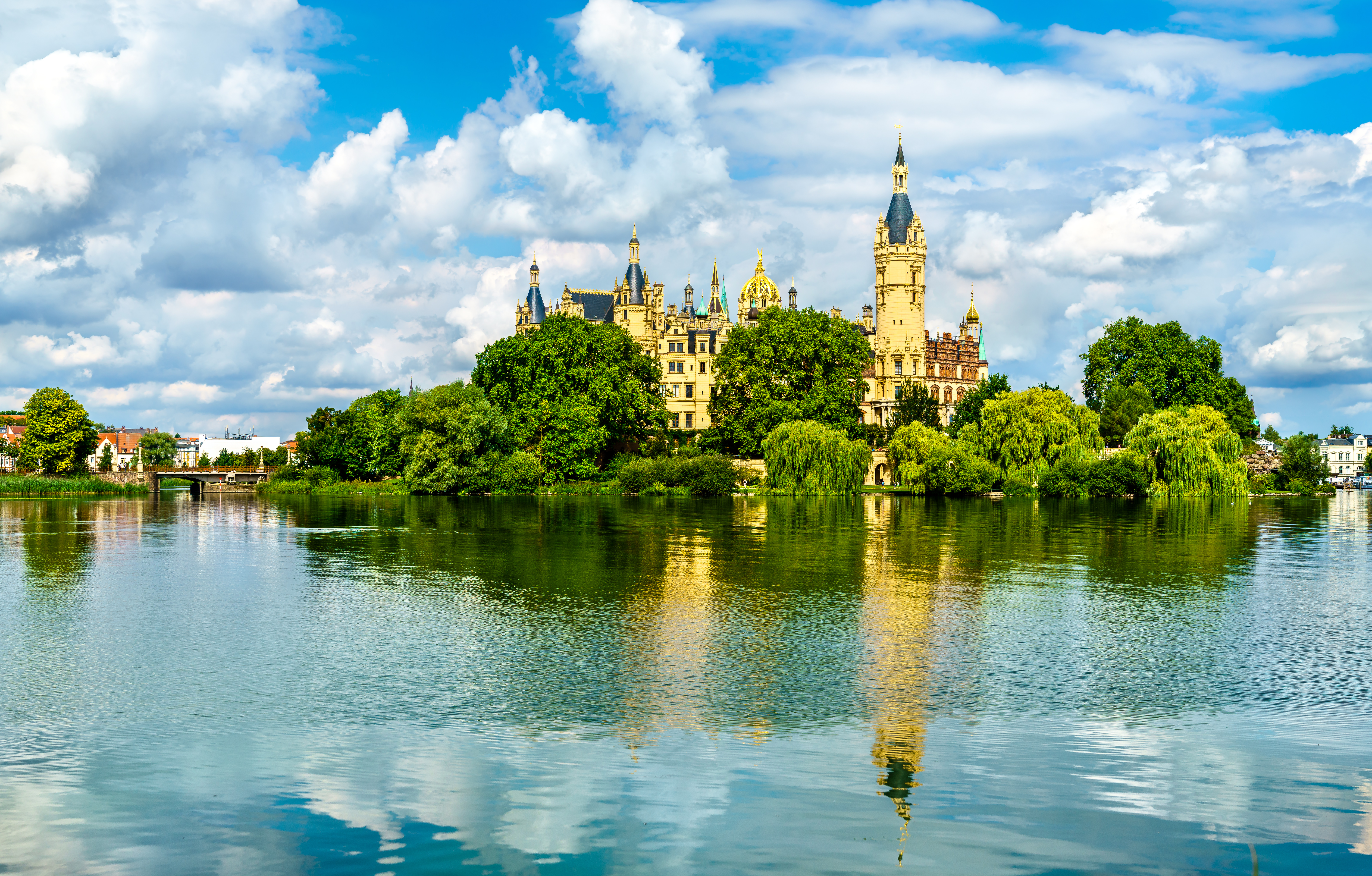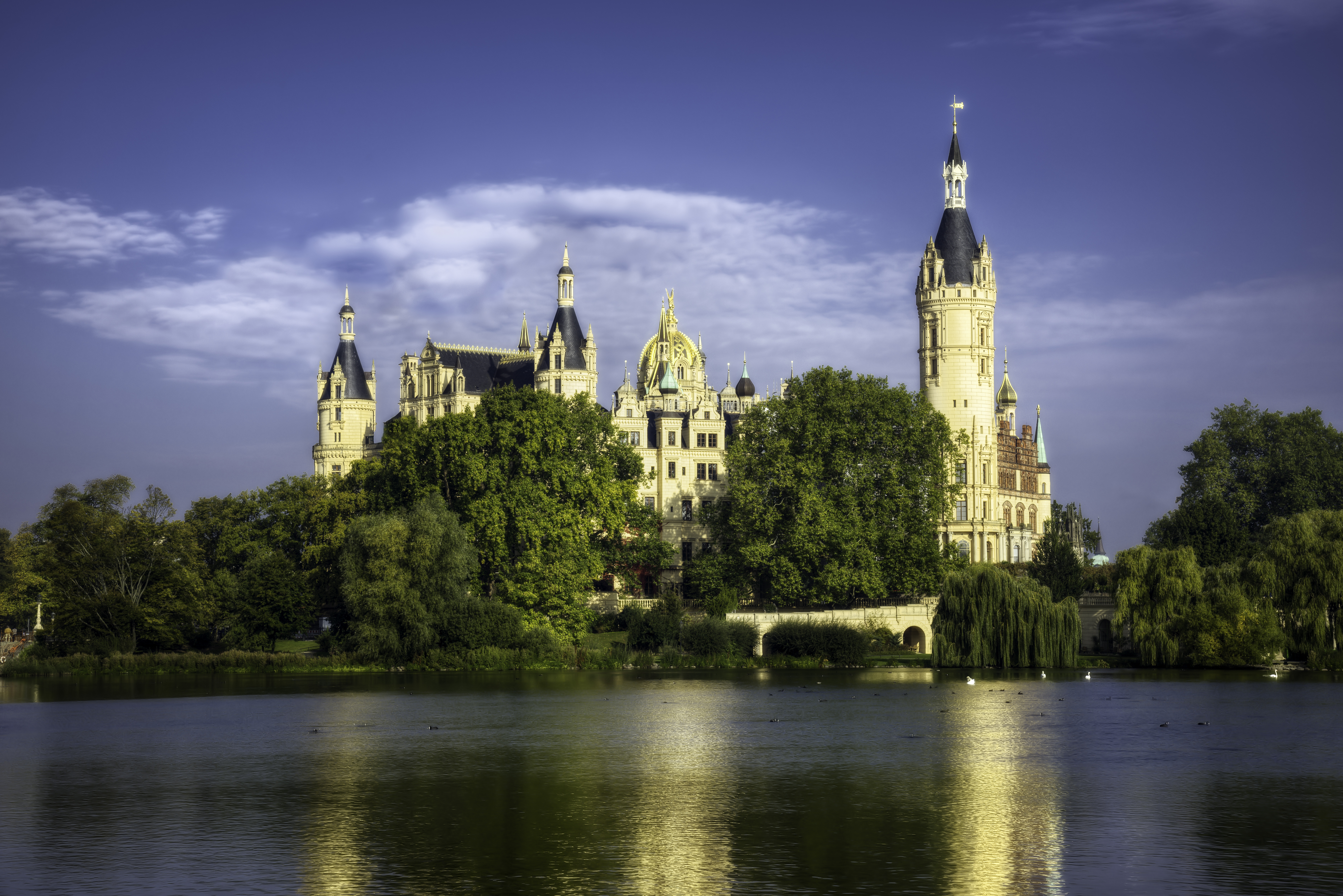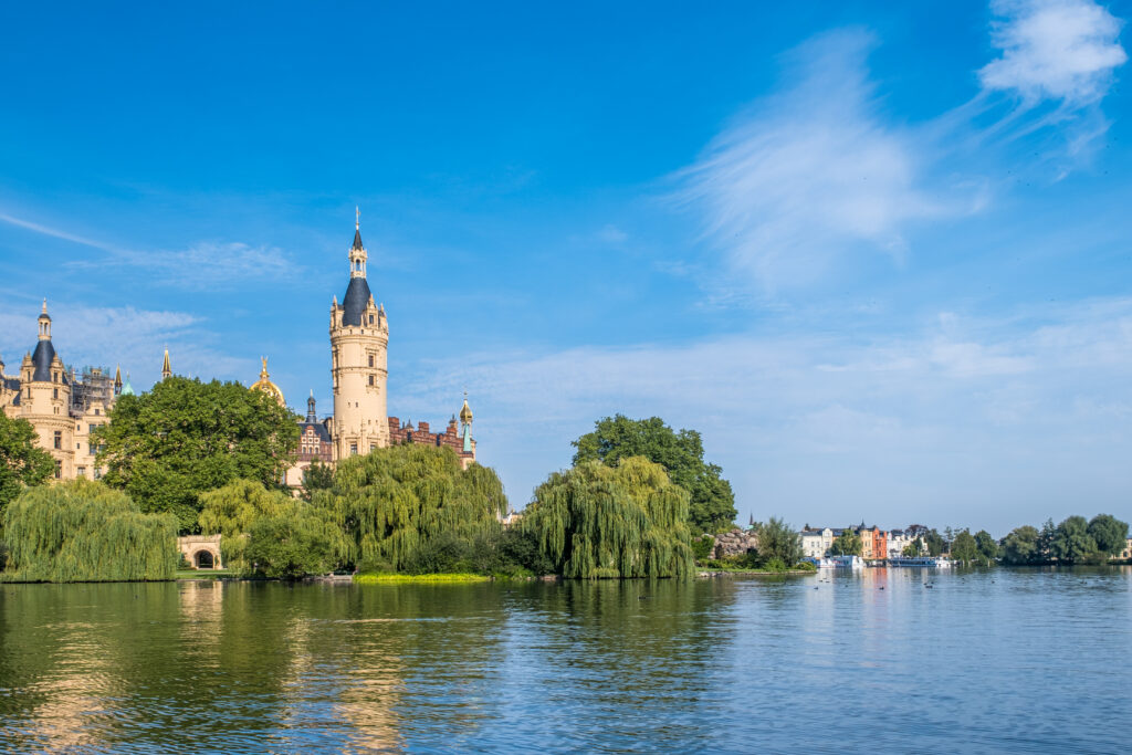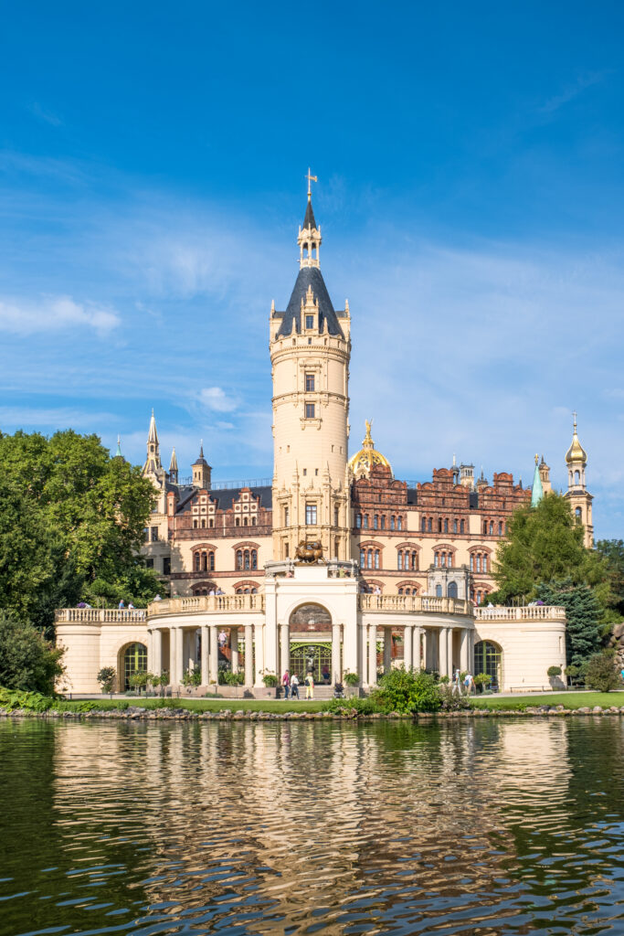 Origins in Obotrite foundations. The illustrious history of Schwerin Castle began on a much more modest scale than its current splendor would suggest. Its roots date back to the 10th century, to the Slavic Middle Ages, when the ruling Obotrites, ancestors of the Mecklenburg princes, built a fortified castle on an island in Lake Schwerin. Archaeological excavations have uncovered remains of this early fortification, including a Slavic rampart that formed the core of today’s castle. This original structure served the Obotrites both as a defensive bulwark and as a symbol of their power. In the late 14th century, the Obotrites, who had since been Christianized and were integrated into the German Empire as Dukes of Mecklenburg, began to transform the earthen ramparts into an increasingly permanent stone residence.