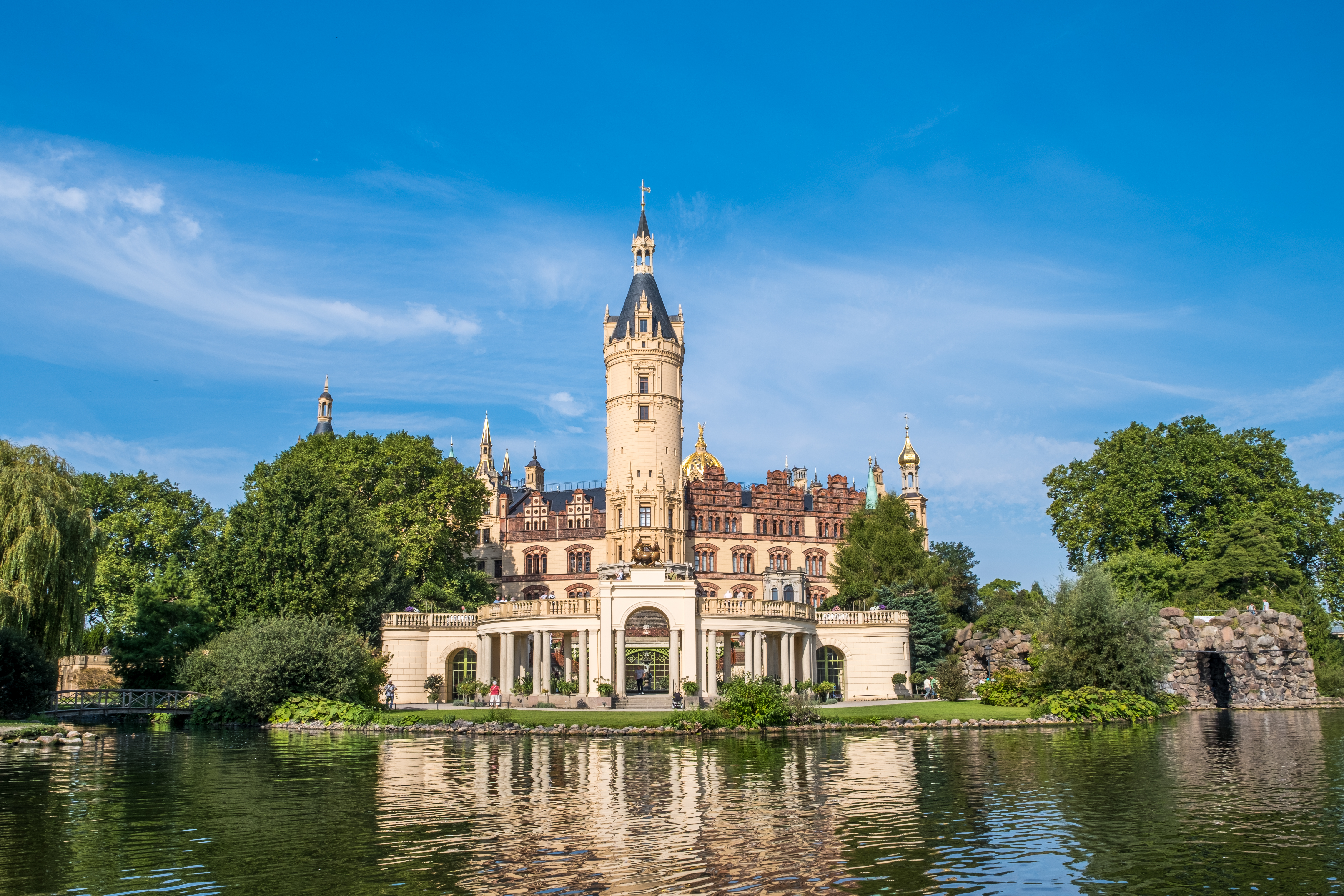 Revival in the 19th century under Grand Duke Friedrich Franz II. The stagnation came to a dramatic end shortly before the middle of the 19th century under Grand Duke Friedrich Franz II. After his father Paul Friedrich had moved the court back from Ludwigslust to Schwerin in 1837, Friedrich Franz II initiated a radical redesign of the palace. In 1842, he commissioned his court architect Georg Adolph Demmler to redesign the palace with the aim of creating a monumental residence while preserving some aspects of the existing Renaissance structure. The renovation work lasted from 1843 to 1857 and was co-designed by various architects, including Hermann Willebrand and the renowned Berlin architect Friedrich August Stüler. The integration of local architectural traditions with elements of the French Renaissance resulted in an architectural masterpiece. The facades and interiors of the palace were designed to overwhelm and impress, resulting in one of the most fascinating sequences of rooms in early German historicism. This grandeur secured Schwerin Palace a place on Germany’s tentative list for UNESCO World Heritage status, not only because of its size, but also because of its architectural and artistic sophistication.