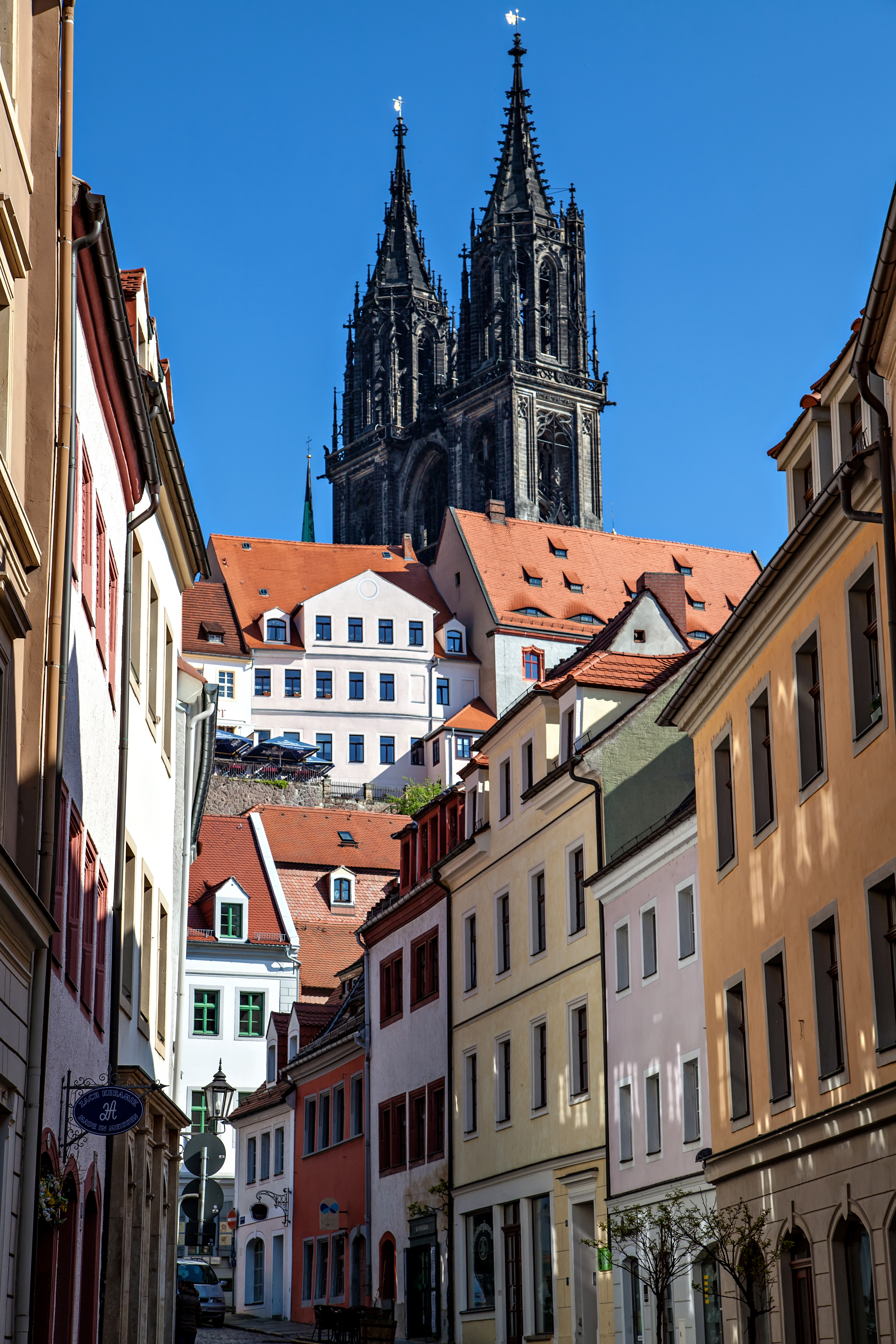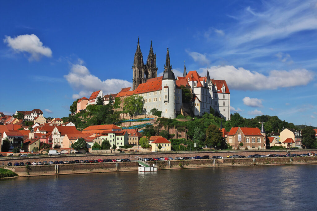 Beyond the castle, the town of Meissen exudes an ethereal charm. Cobblestone streets wind past half-timbered houses and ancient chapels, filled with the whispers of time. From the banks of the Elbe River, an enchanting panorama unfolds: the filigree facades of Albrechtsburg Castle and Meissen Cathedral dominate the skyline, silhouetted against the ever-changing colors of the Saxon sky.