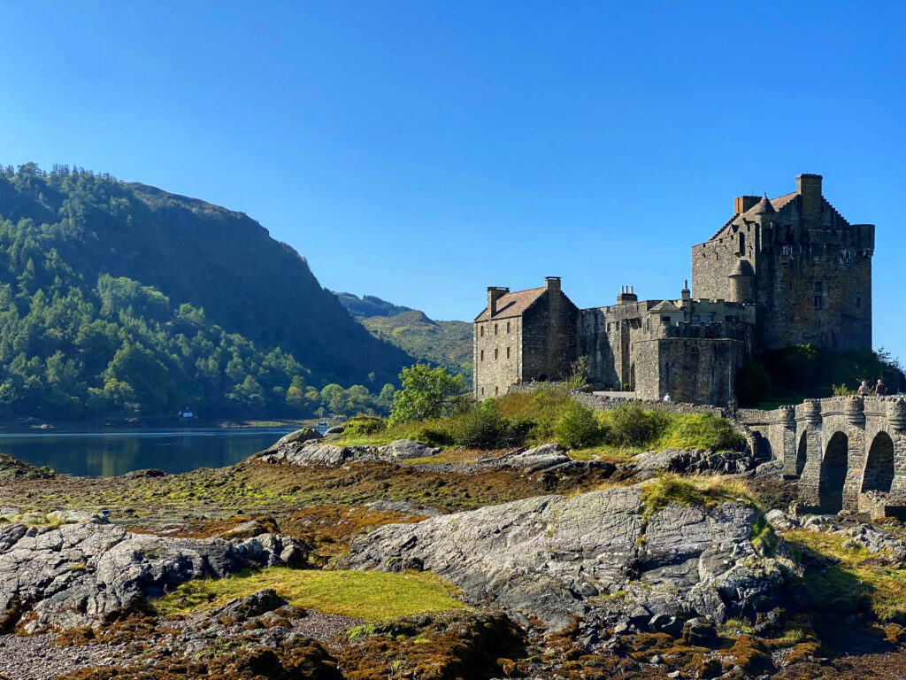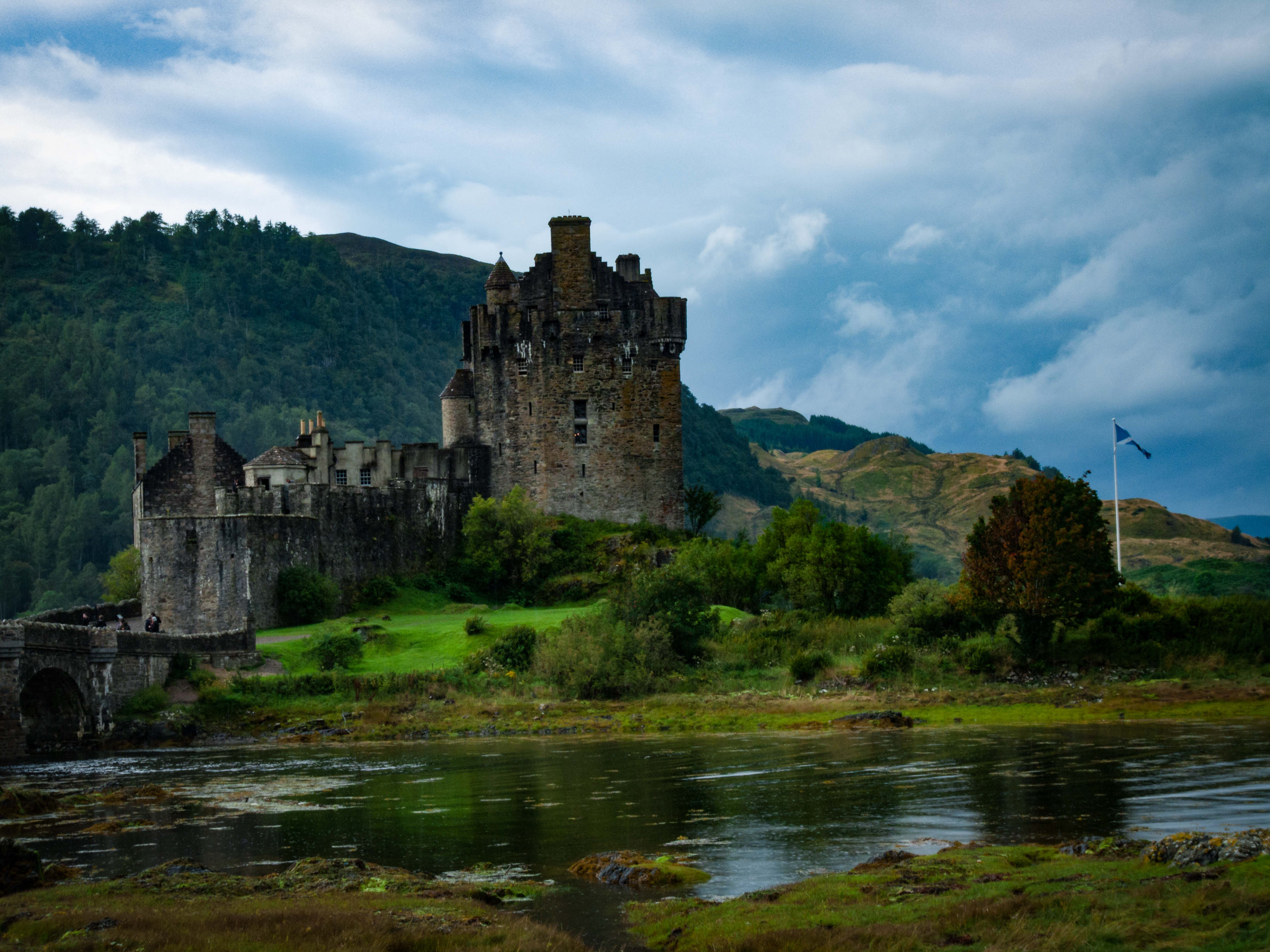 Nestled where three lochs meet in the western Scottish Highlands, Eilean Donan Castle stands as a timeless sentinel to Scotland’s storied past. Its name, translating to “Donan’s Island,” harks back to Saint Donnán of Eigg, a 6th-century Celtic martyr whose spirit is said to linger on. This ancient stronghold near the village of Dornie transforms into a tidal island during high tide, accessible only by a stone footbridge that enhances its enigmatic allure.