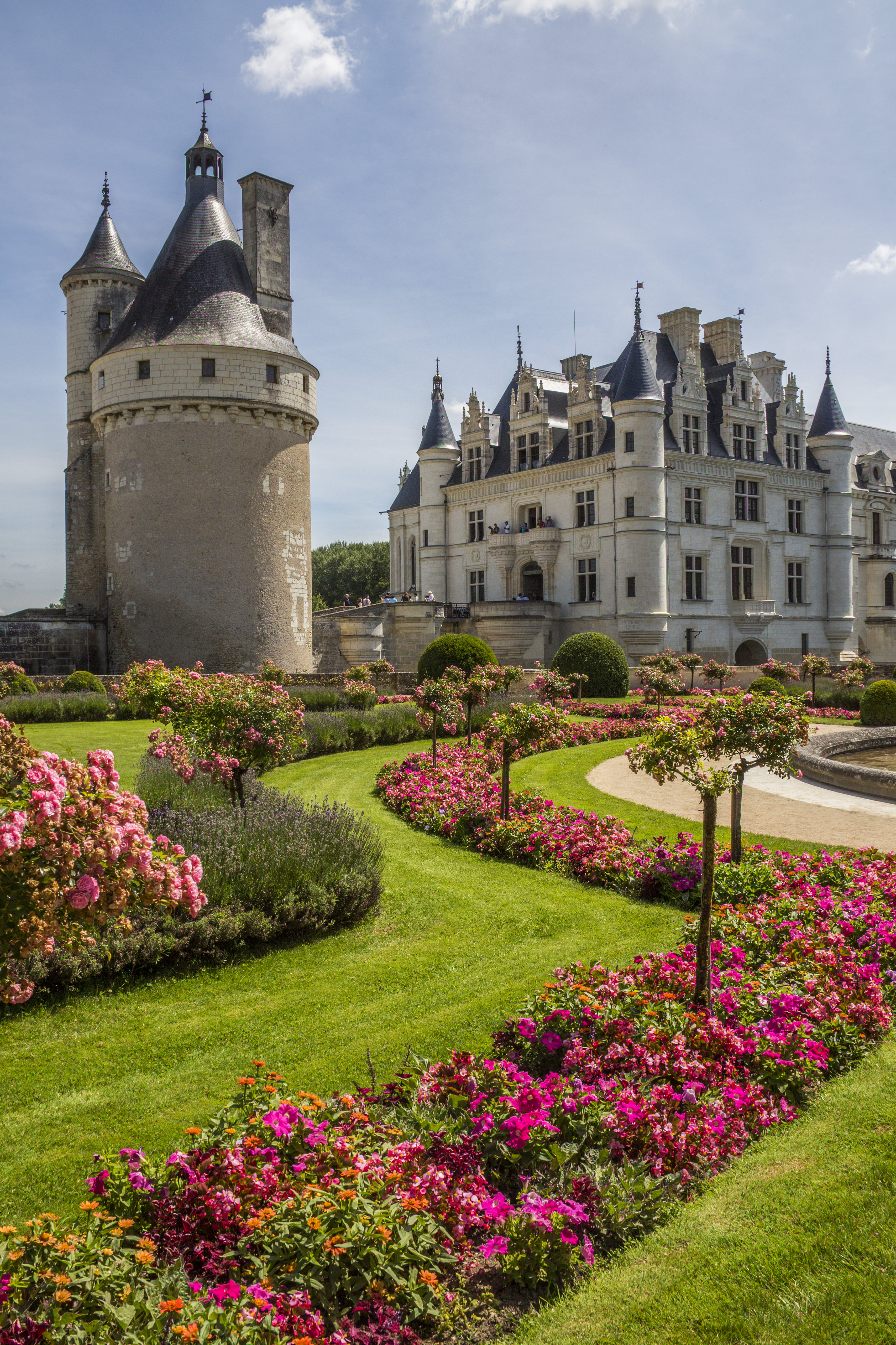 The main castle was built in a unique setting and is elegantly surrounded by the waters of the River Cher, with its elongated gallery spanning the river – a rare architectural feat that only the Château de Montsoreau also boasts. The Tour des Marques, the remains of an earlier fortress, stands to the north, flanked by Renaissance gardens renowned for their beauty and symmetry.
