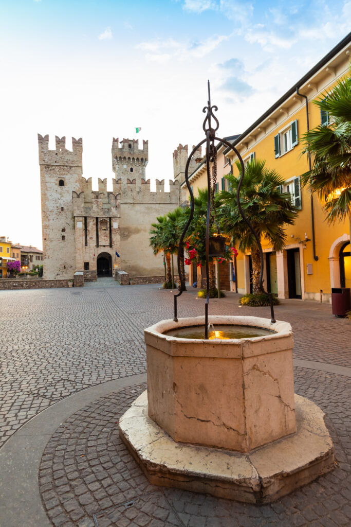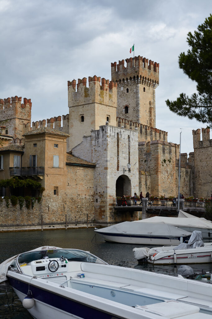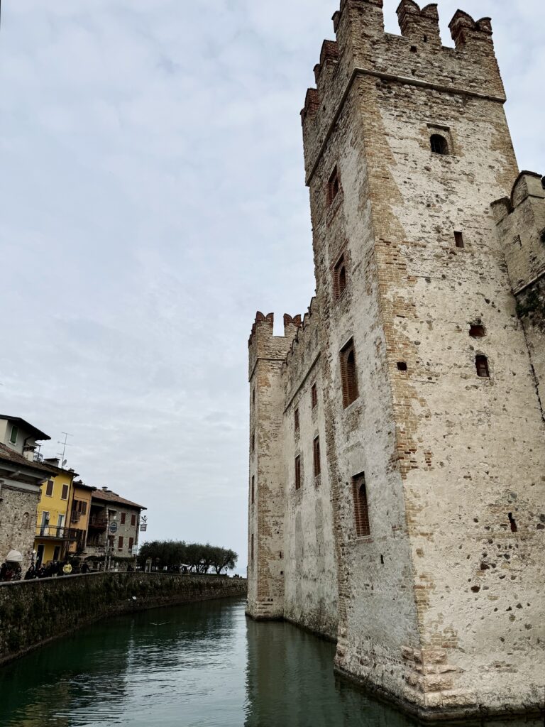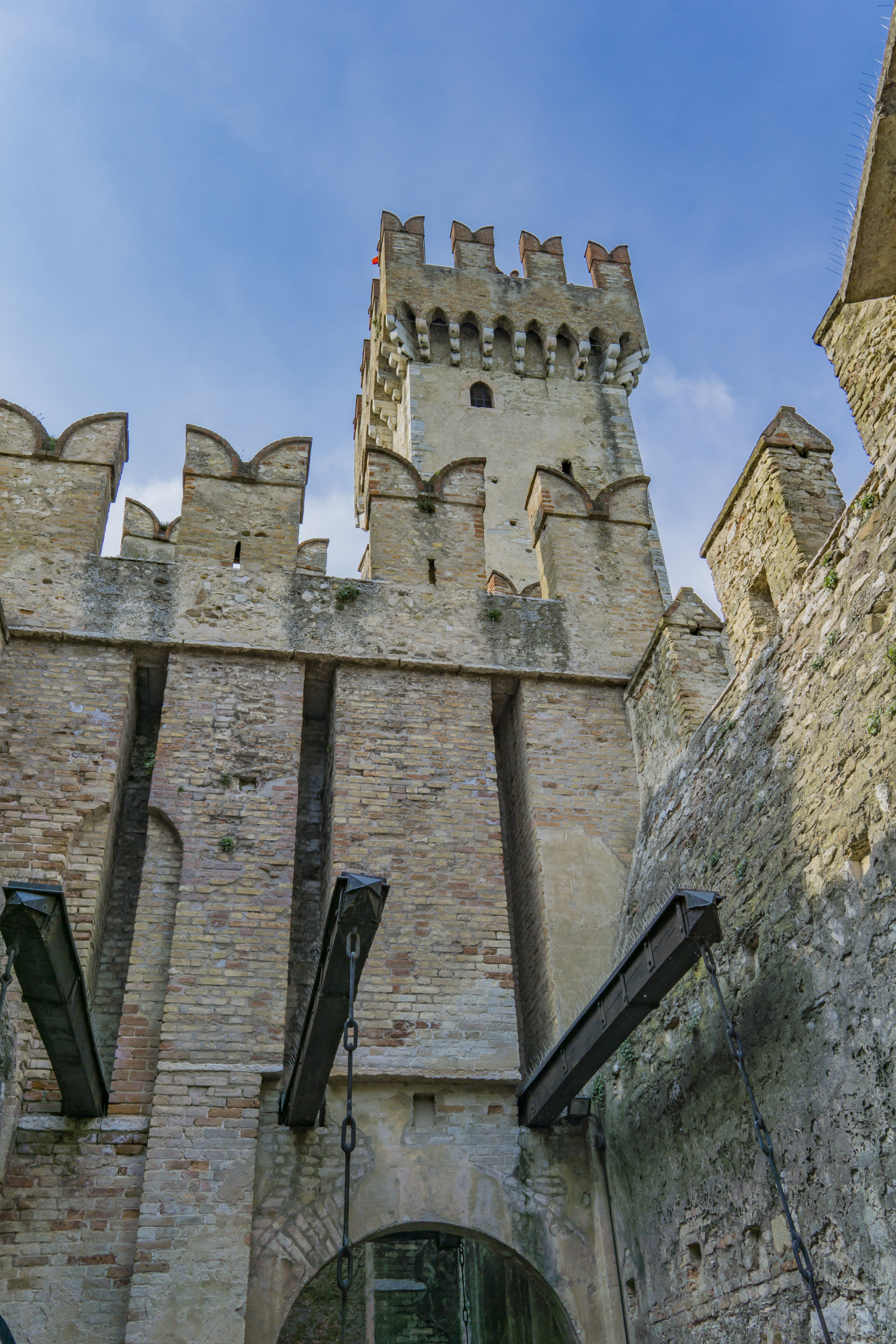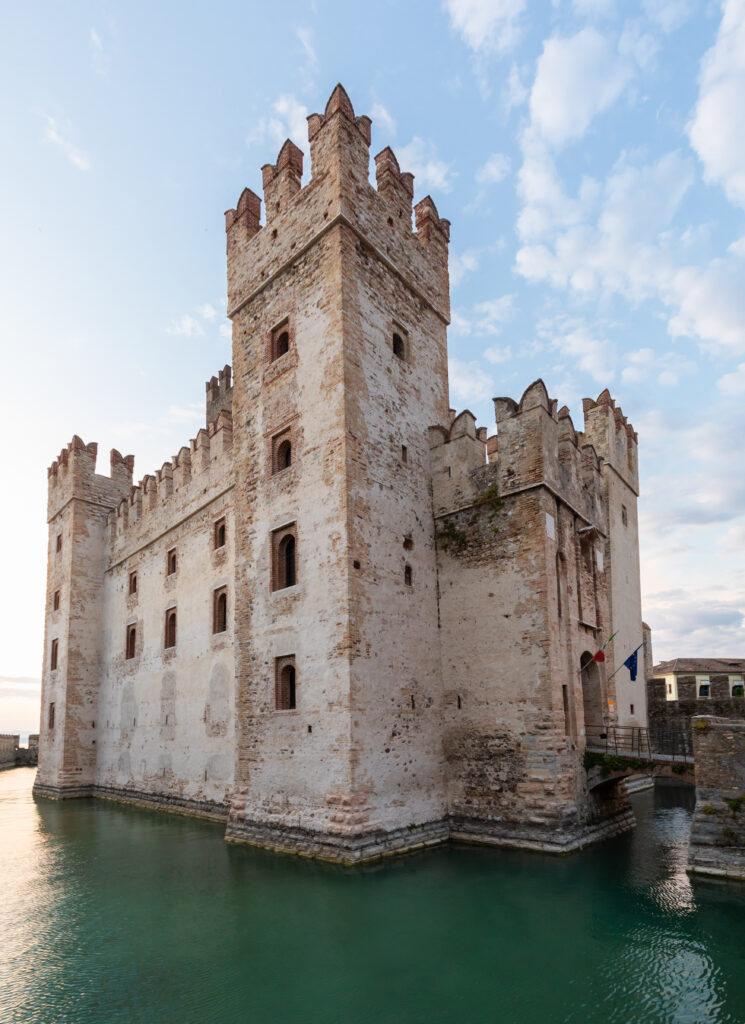 The Scaliger Castle fortress consists mainly of the main castle with its keep and unique harbor. Surrounded by a moat connected to Lake Garda, three sides of the castle offer impressive protection. The western and northern parts have moats up to 15 meters wide and filled with water, while the southern side extends over 25 meters. Inside, a smaller substructure called the “zwinger” separates the main part from the harbor and is reinforced by high walls and Guelf battlements.