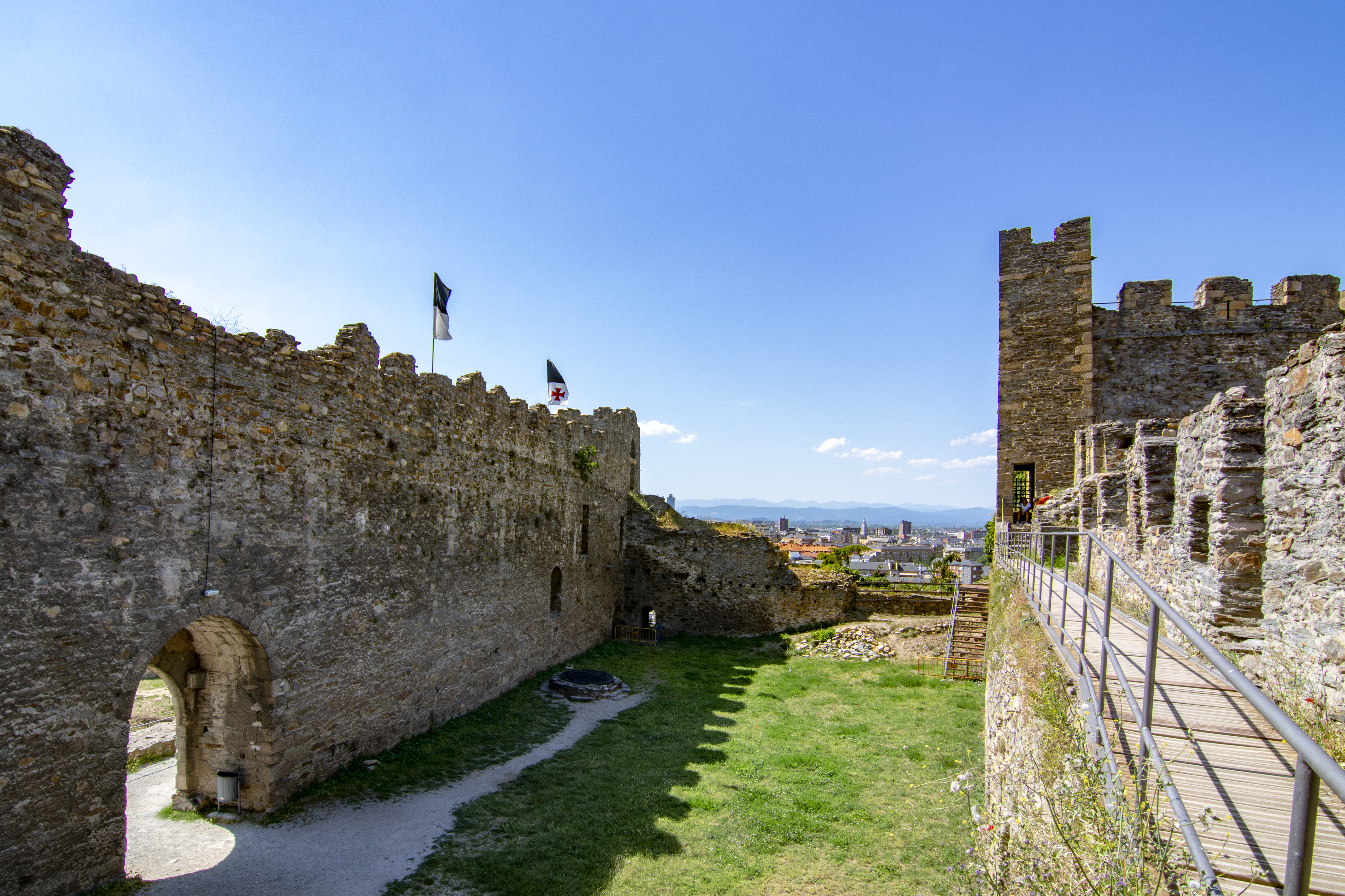 A fortress born of Celtic mysteries – The origins of Ponferrada Castle can be traced back to its earliest days, when it probably served as a Celtic fortress. Strategically located between the mountains and the Sil River, the site offered sufficient protection from invaders. With the arrival of the Romans and later the Visigoths, this place continued to serve as a military stronghold, a fact that did not escape the keen eyes of the Knights Templar. In 1178, King Ferdinand II of León granted the Knights Templar permission to build a fortress in Ponferrada. The Knights Templar, known for their martial skills and religious zeal, were tasked with protecting pilgrims on their way to Santiago de Compostela, one of the most important Christian pilgrimage routes. This change heralded the birth of today’s Ponferrada—a symbol of knightly duty and spiritual devotion.