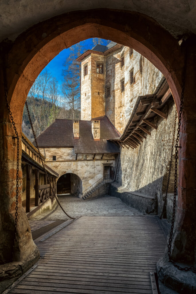 The eerie interior of the castle – The architecture of Orava Castle contributes significantly to its eerie atmosphere. Narrow staircases, dark corridors, and mysterious chambers give the building a labyrinthine character. Particularly exciting are the hidden rooms, some of which have only been discovered in recent decades. It is said that some of these rooms once served as hiding places in times of war, while others were used as secret meeting places for alchemists and occultists. One room stands out in particular: the so-called “Room of Shadows.” This small, windowless room is said to be the scene of numerous paranormal activities. Visitors report inexplicable feelings of cold, flickering lights, and whispering voices that seem to come from nowhere.