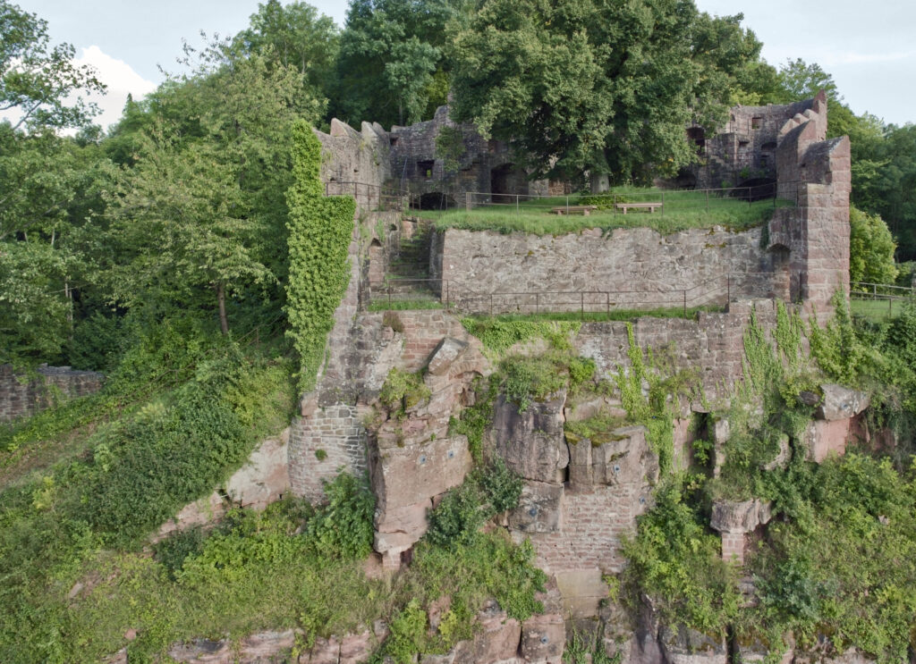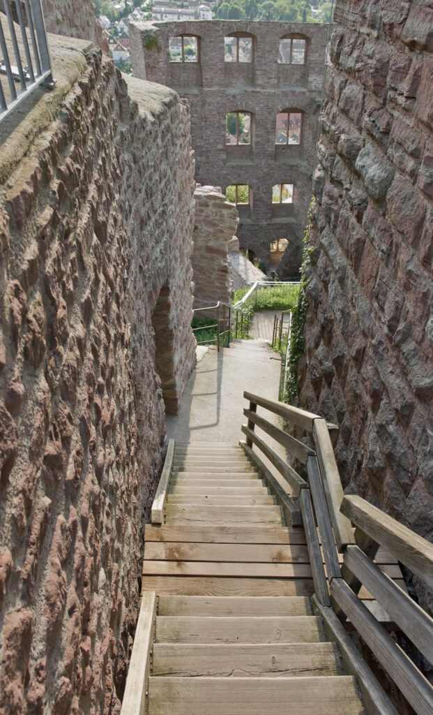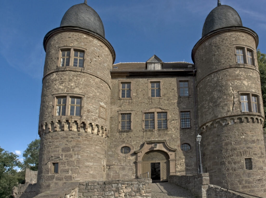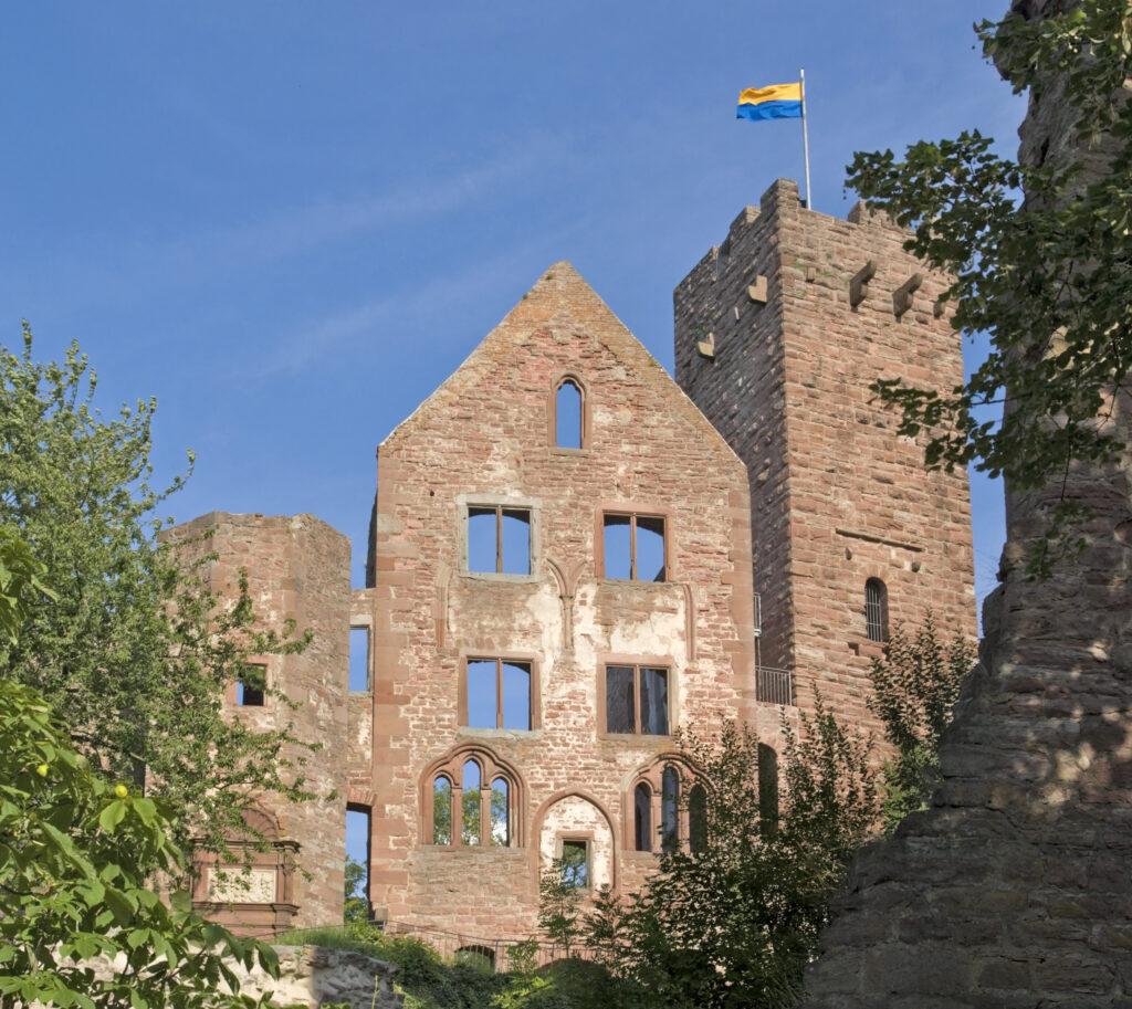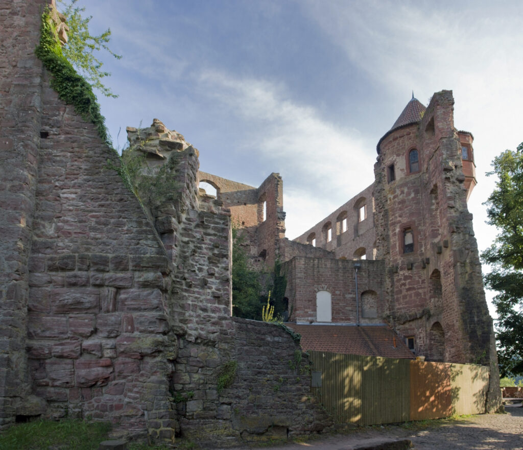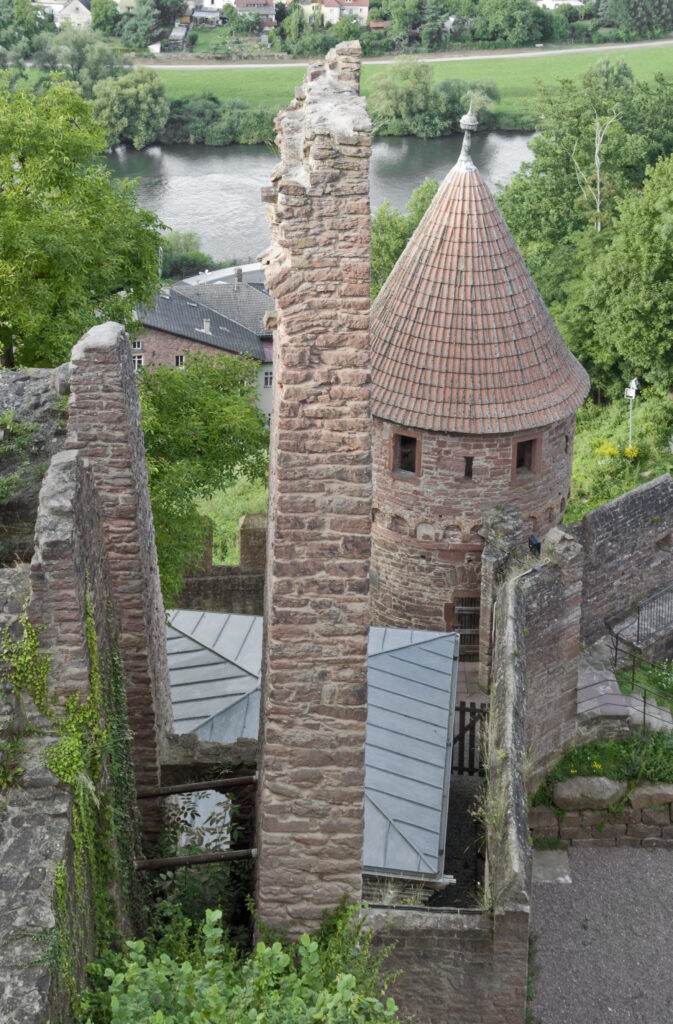 The origins of Wertheim Castle date back to the late 12th century. Its earliest structures include the keep, built around 1200, and the great hall from the mid-13th century. The castle’s strategic location ensured that it was not only a military fortress but also a cultural center. It is noteworthy that the poet Wolfram von Eschenbach, known for his epic poem “Parzival,” probably spent a lot of time within these walls. His verses indicate his close connection to the Counts of Wertheim, particularly through the mention of “min herre der grave von Wertheim” in the fourth book of Parzival. This connection suggests that the work was written between 1200 and 1210 during the reign of Count Poppo II, an enthusiastic patron of the arts.