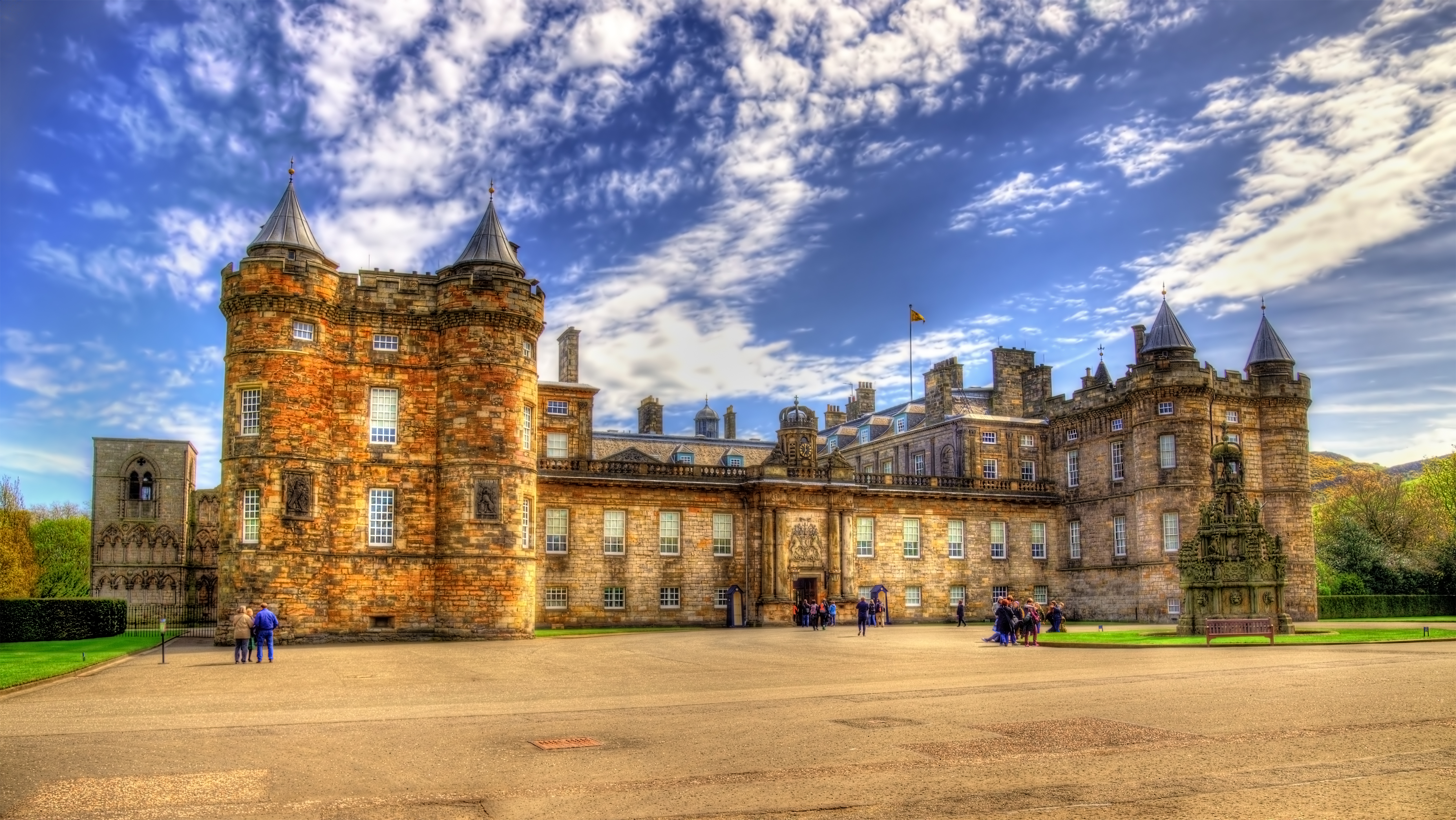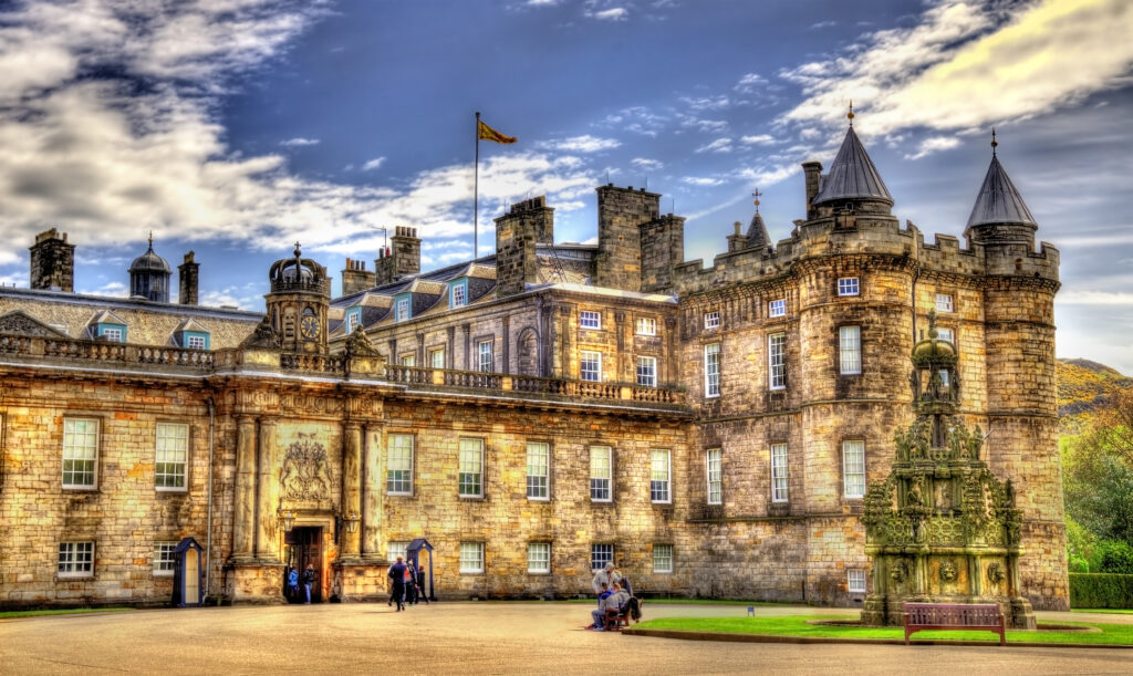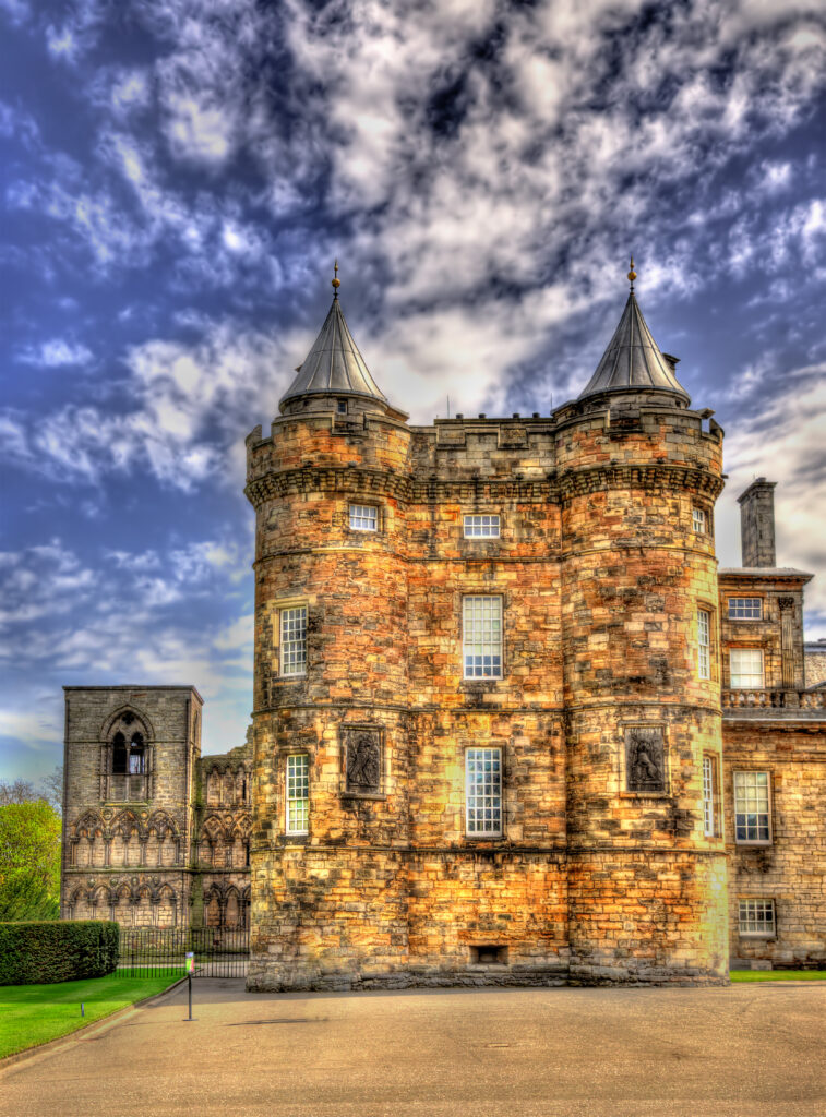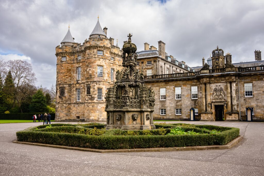 From abbey to palace – The origins of Holyrood Palace date back to 1128, when King David I founded Holyrood Abbey. Originally built as a guest house for the abbey, the property was converted into a magnificent palace in 1501 under James IV of Scotland. The new building included a tower, a great hall, a chapel, and a gatehouse. This conversion marked the beginning of a long and eventful history, shaped by royal figures such as Mary, Queen of Scots, and James VI.