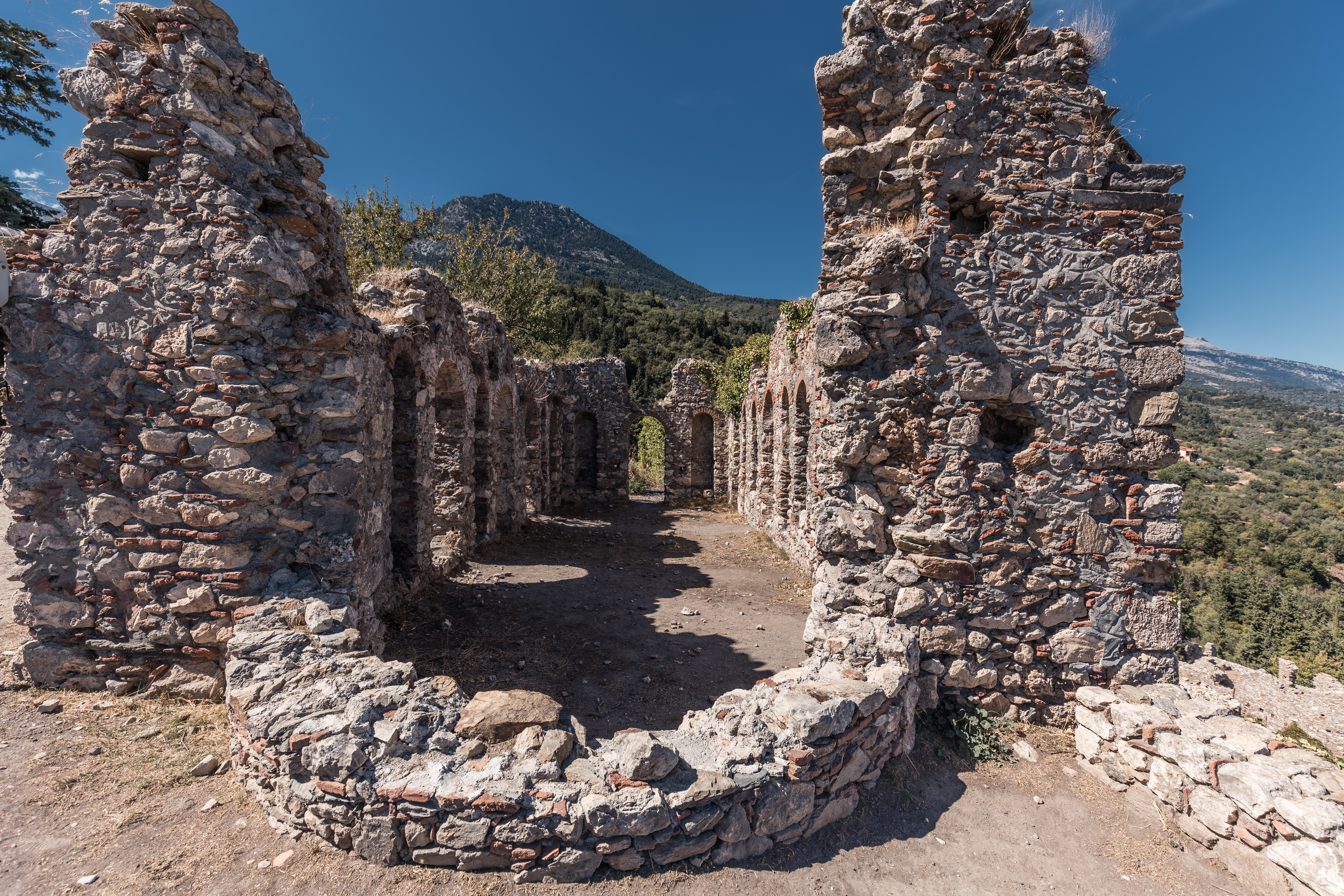 The Fall and the Ottoman Period – In 1460, Mystras fell to the Ottomans. Minarets now dominated the cityscape alongside churches and monasteries. With Francesco Morosini’s Peloponnesian campaign, the city briefly came under Venetian control in 1687, but fell back to the Ottomans in 1715. Mystras’s glory began to fade in 1770 during a Russo-Turkish War. Reinforcements from present-day Albania, who marched into the Peloponnese to suppress the Orlov Revolt, ravaged the city. During the Greek War of Independence in 1825, Mystras was so severely destroyed that reconstruction was abandoned, and instead the abandoned city of Sparta was rebuilt.